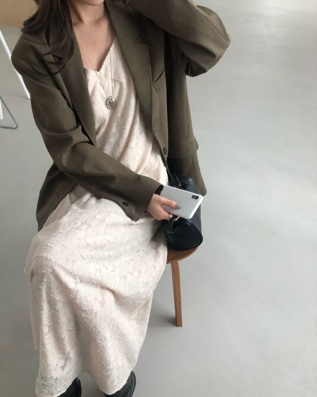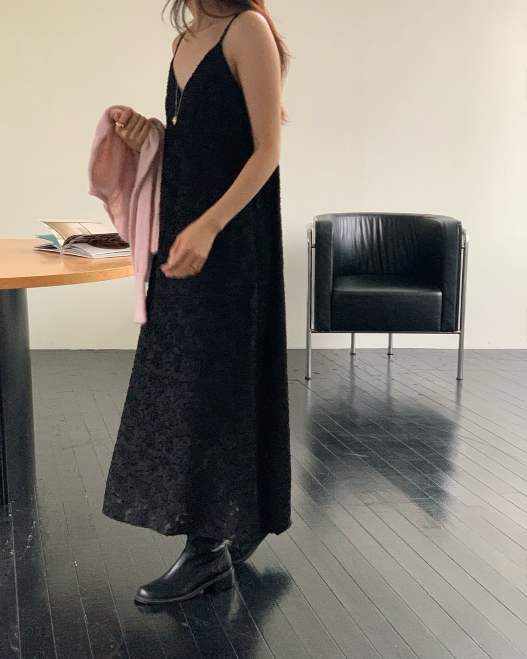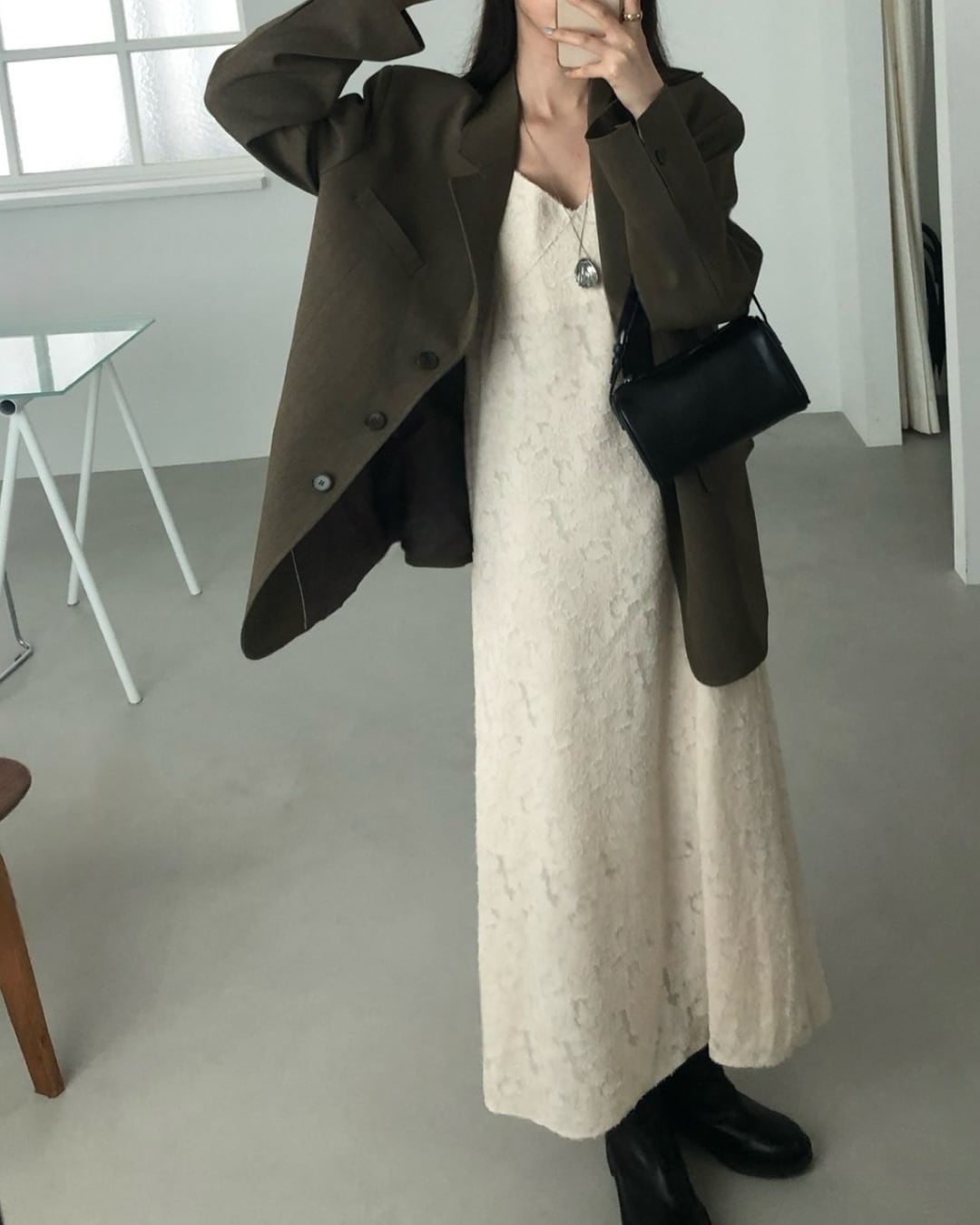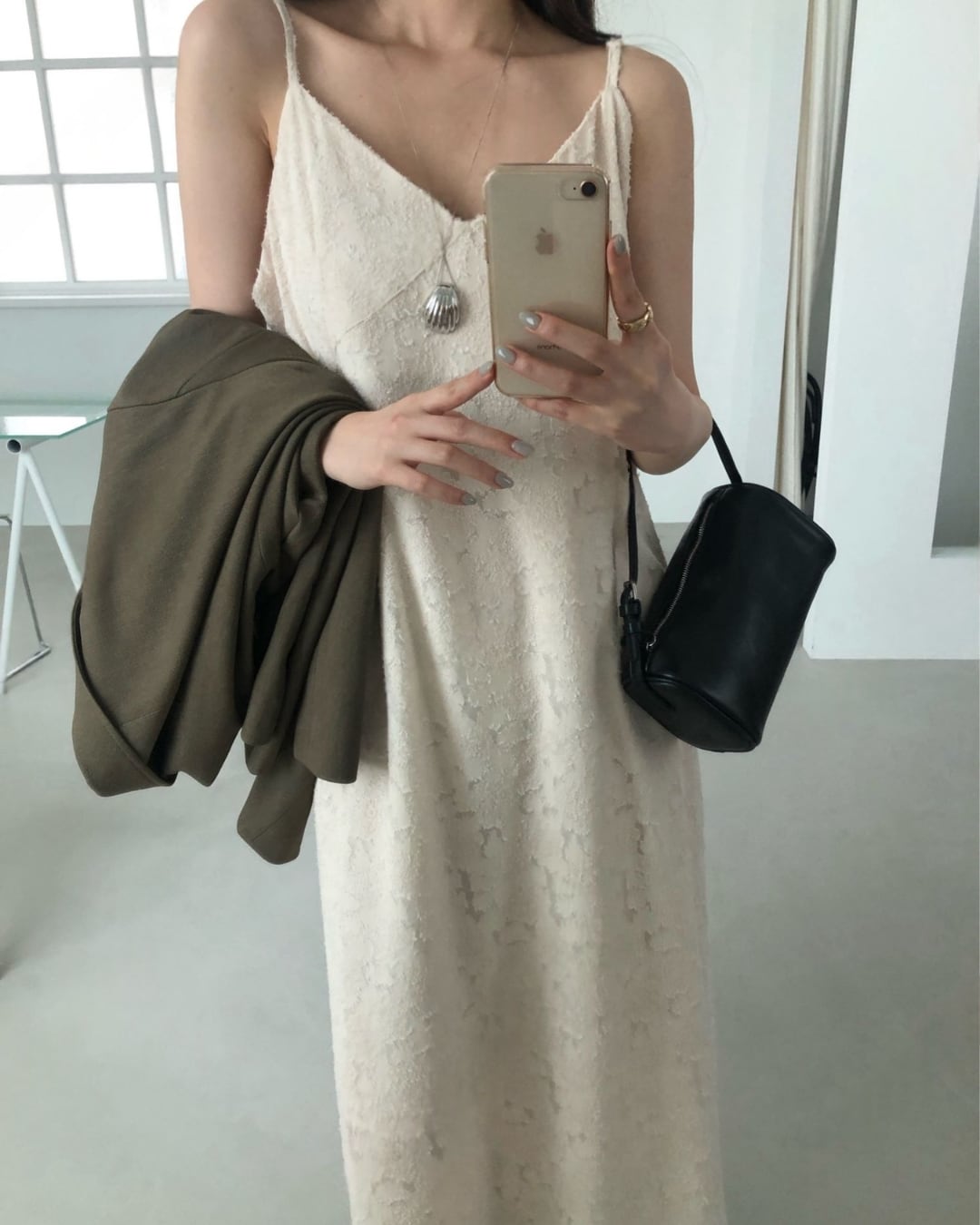 #キャミワンピ #ジャガード素材 #ロングワンピース #レイヤードコーデ #大人カジュアル