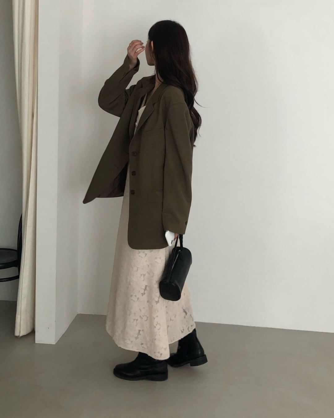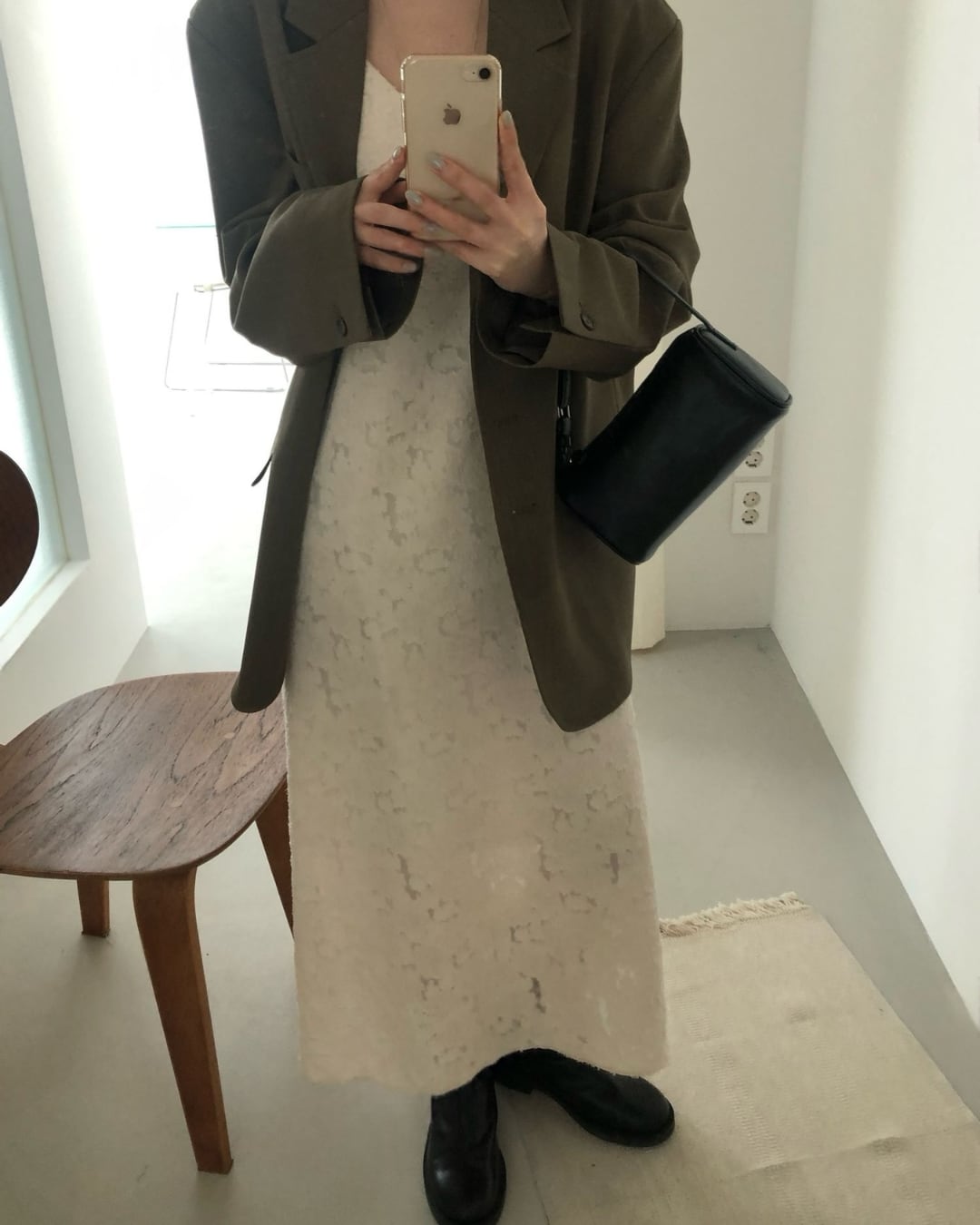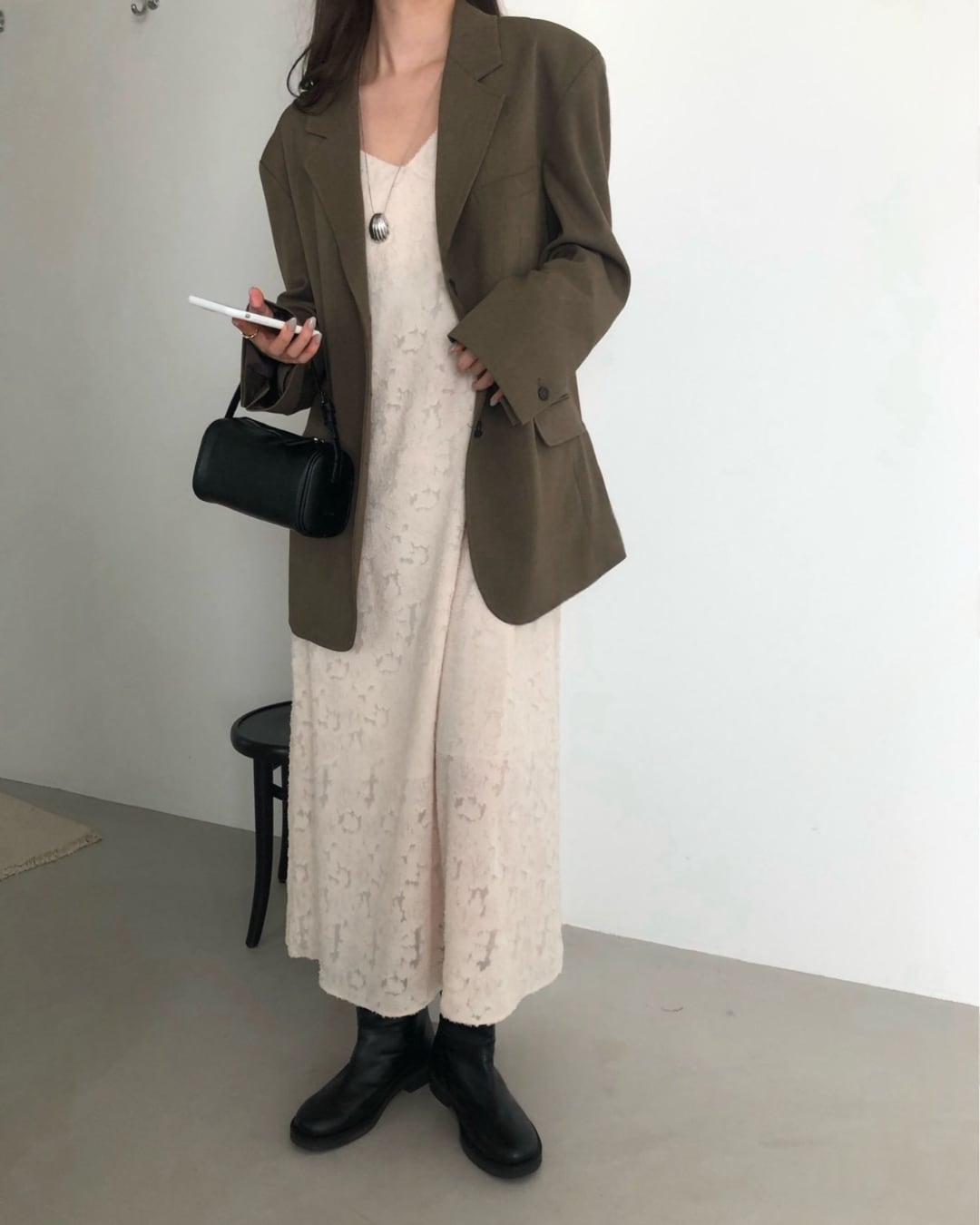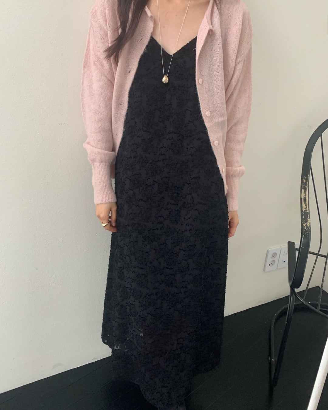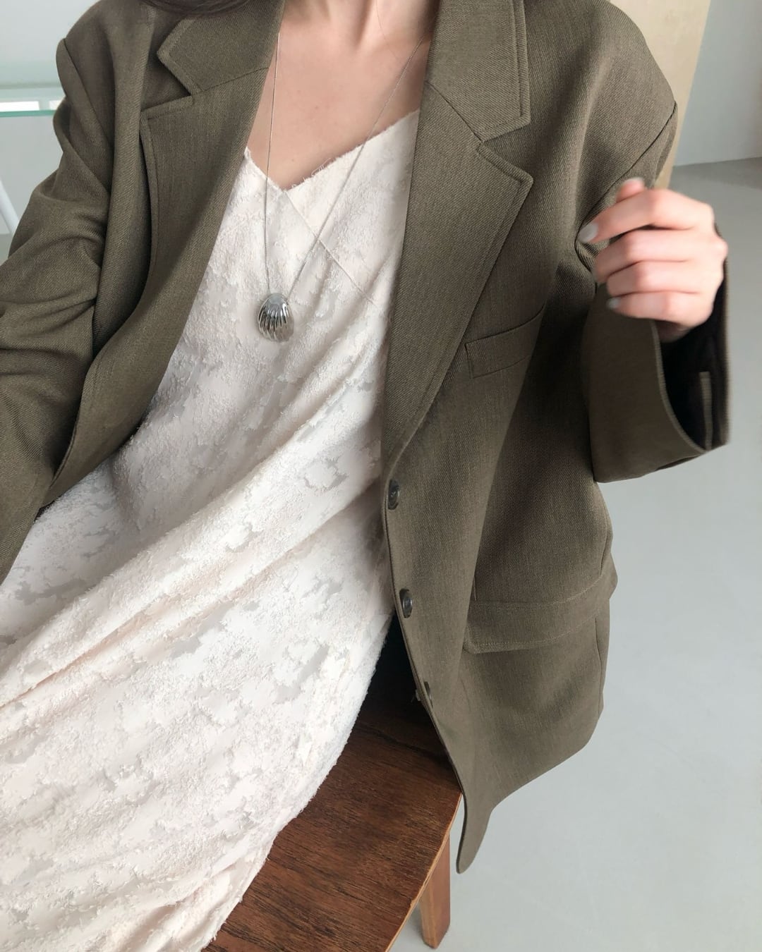 #キャミワンピ #ジャガード素材 #ロングワンピース #レイヤードコーデ #大人カジュアル