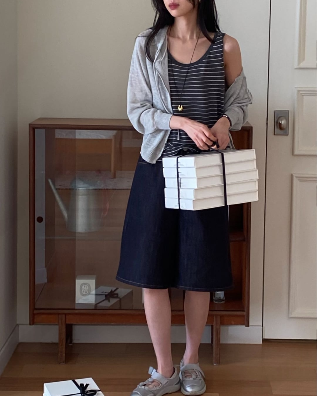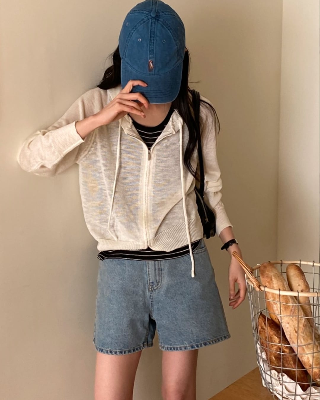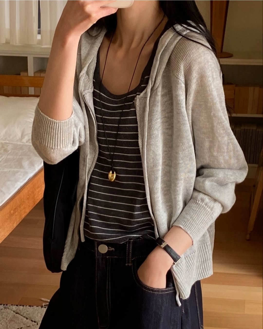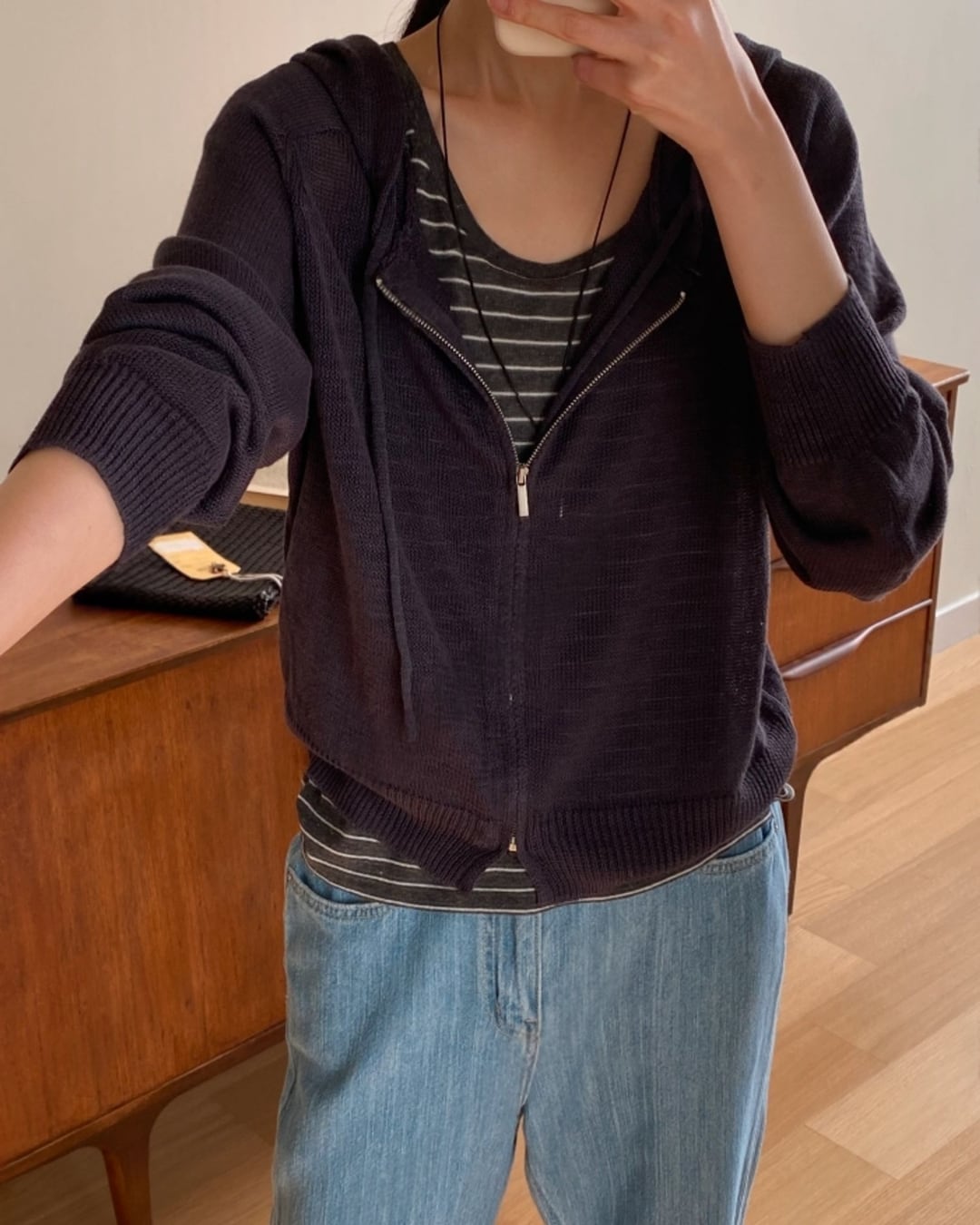 #サマーニット #シアーパーカー #ジップパーカー #羽織りコーデ #大人カジュアル