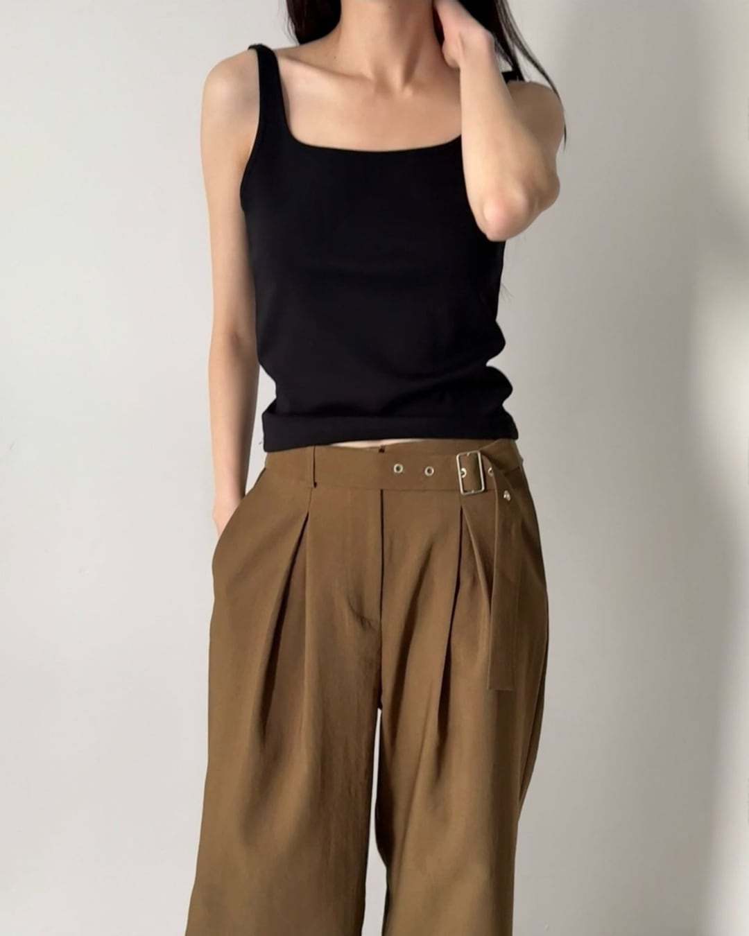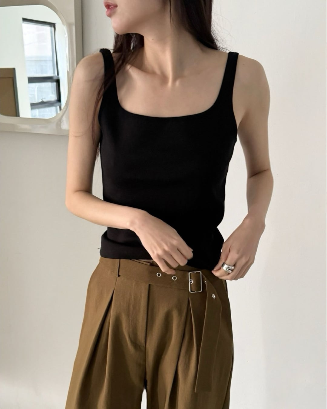 #タンクトップ #バックオープン #コットントップス #シンプルコーデ #大人カジュアル