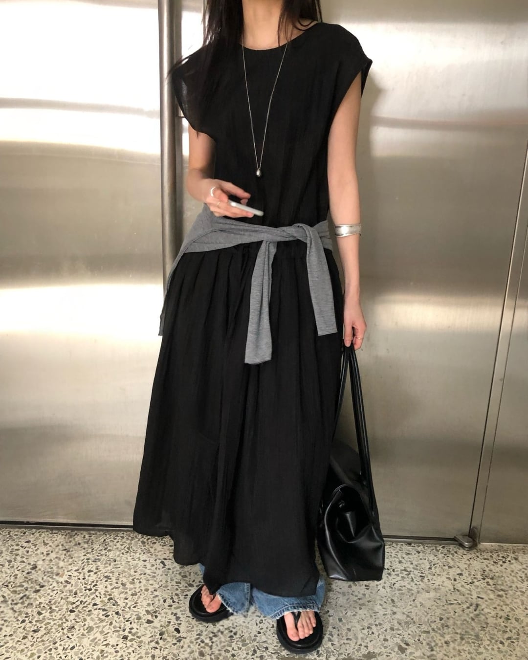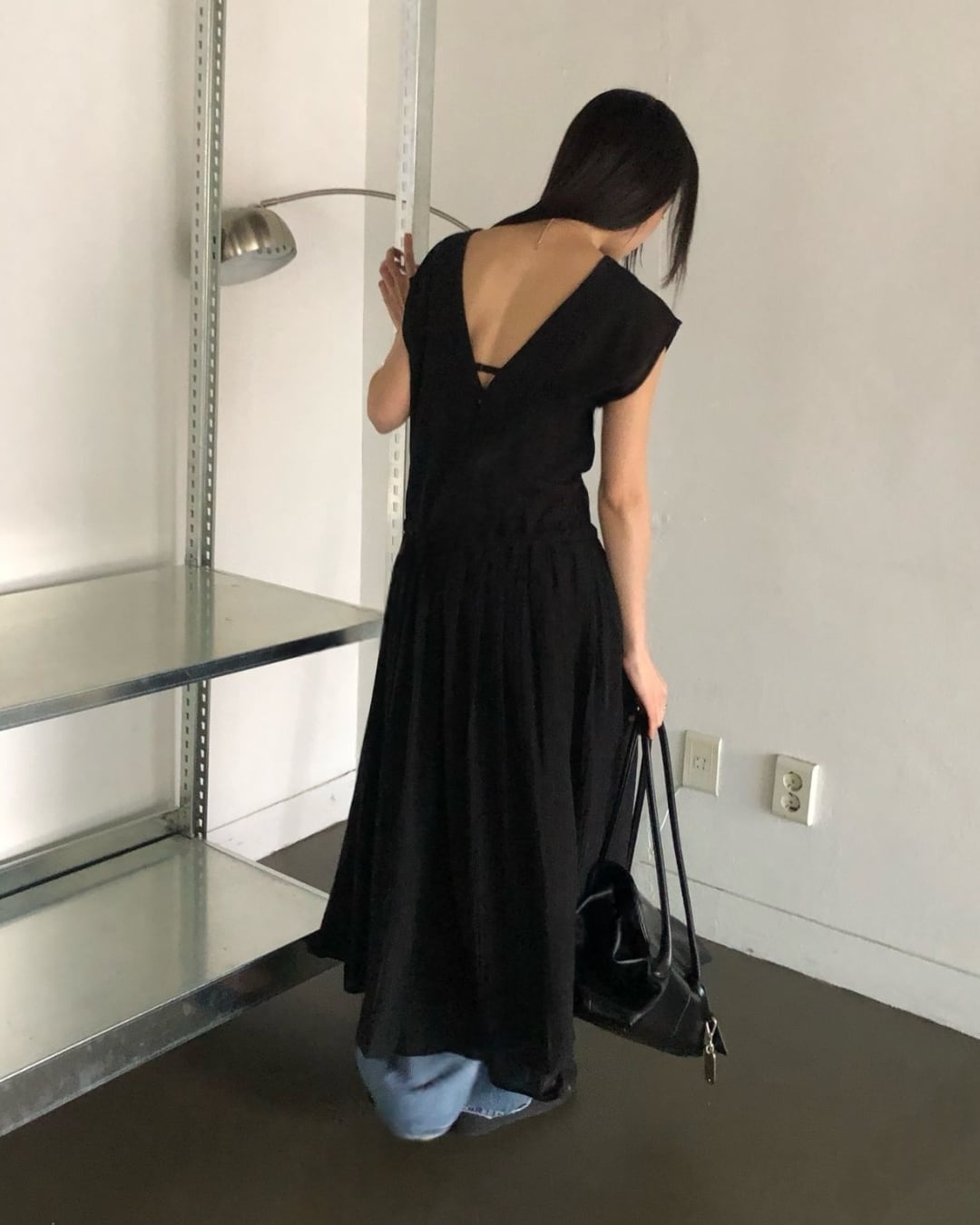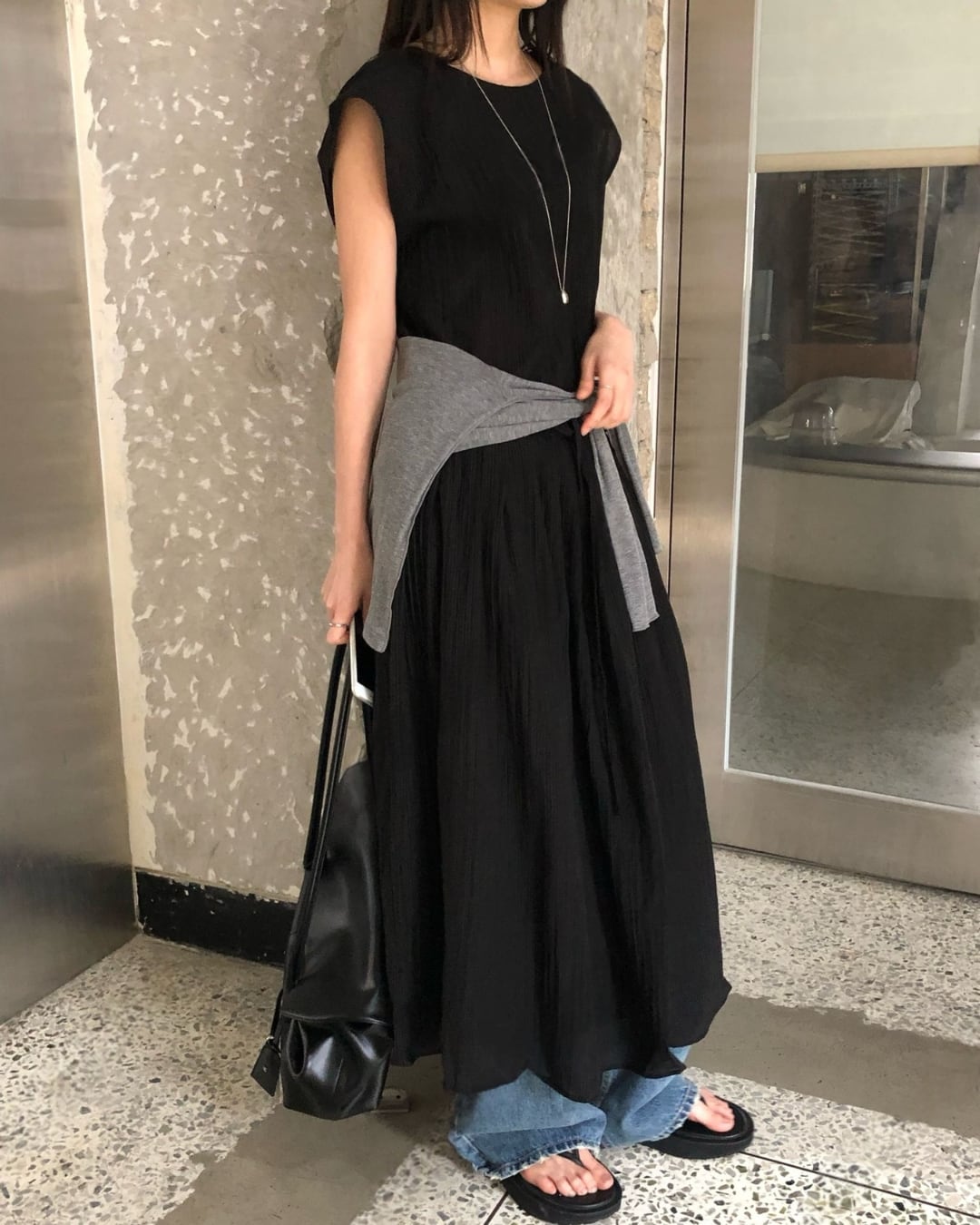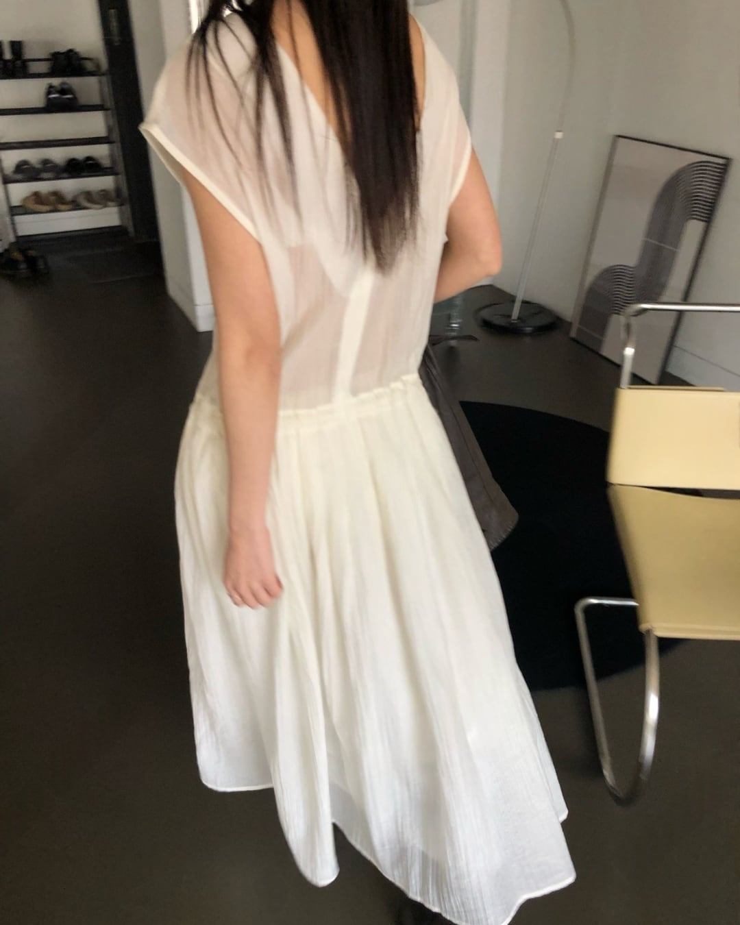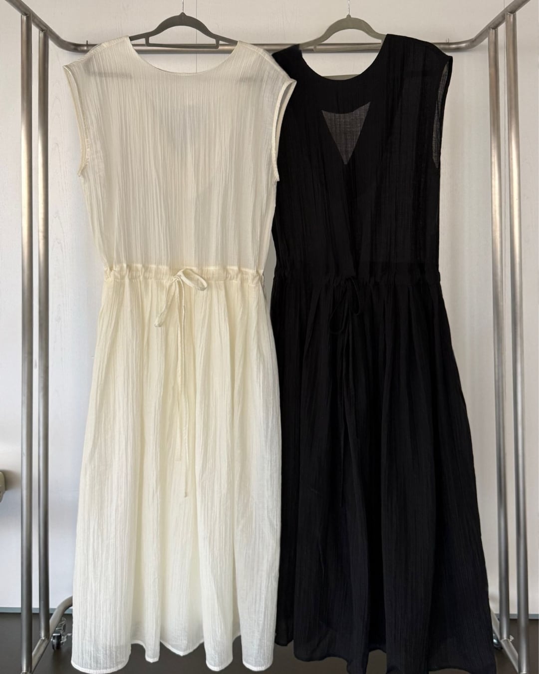 #シアーワンピース #プリーツワンピース #ドローストリング #ナチュラルコーデ #ロングワンピース