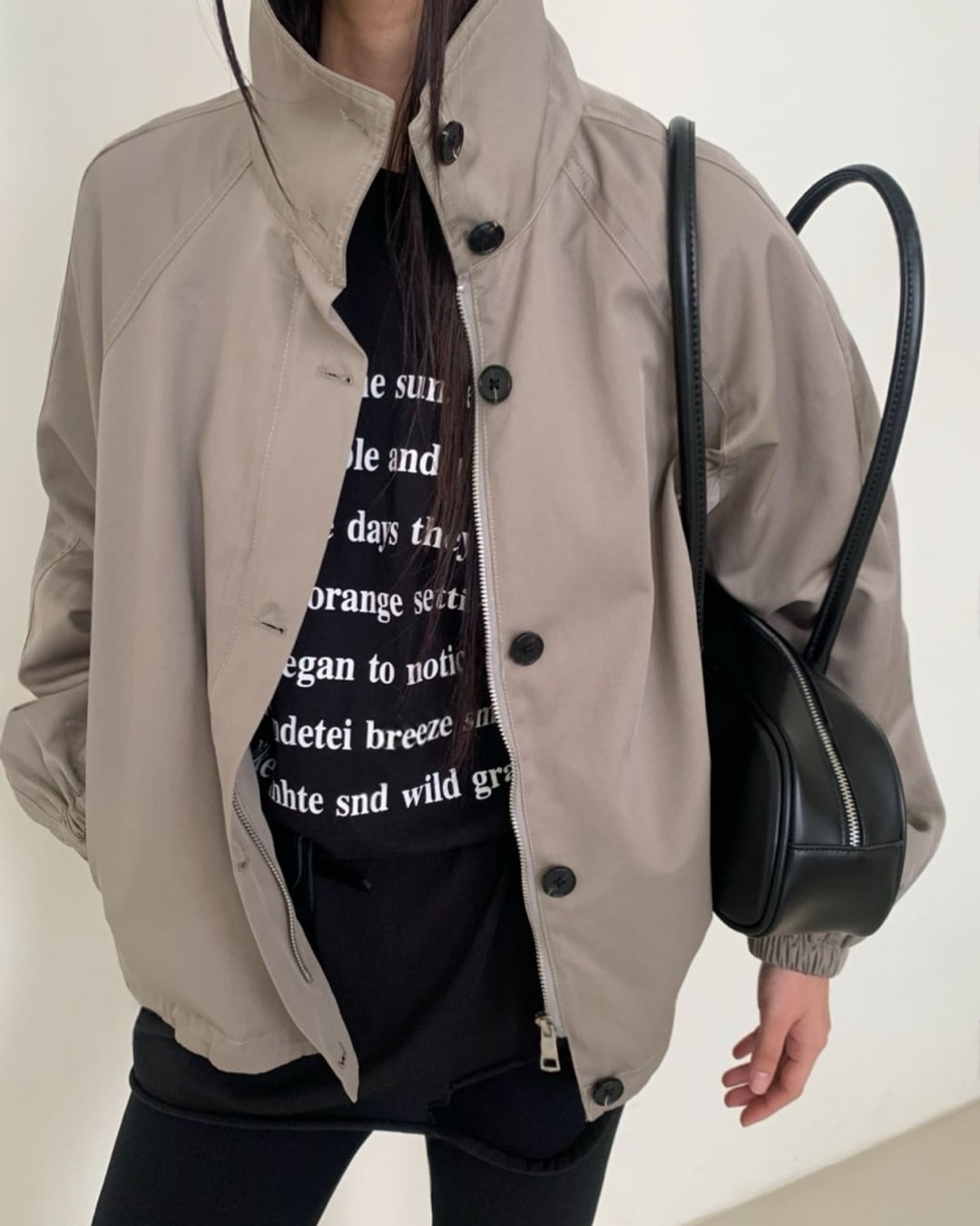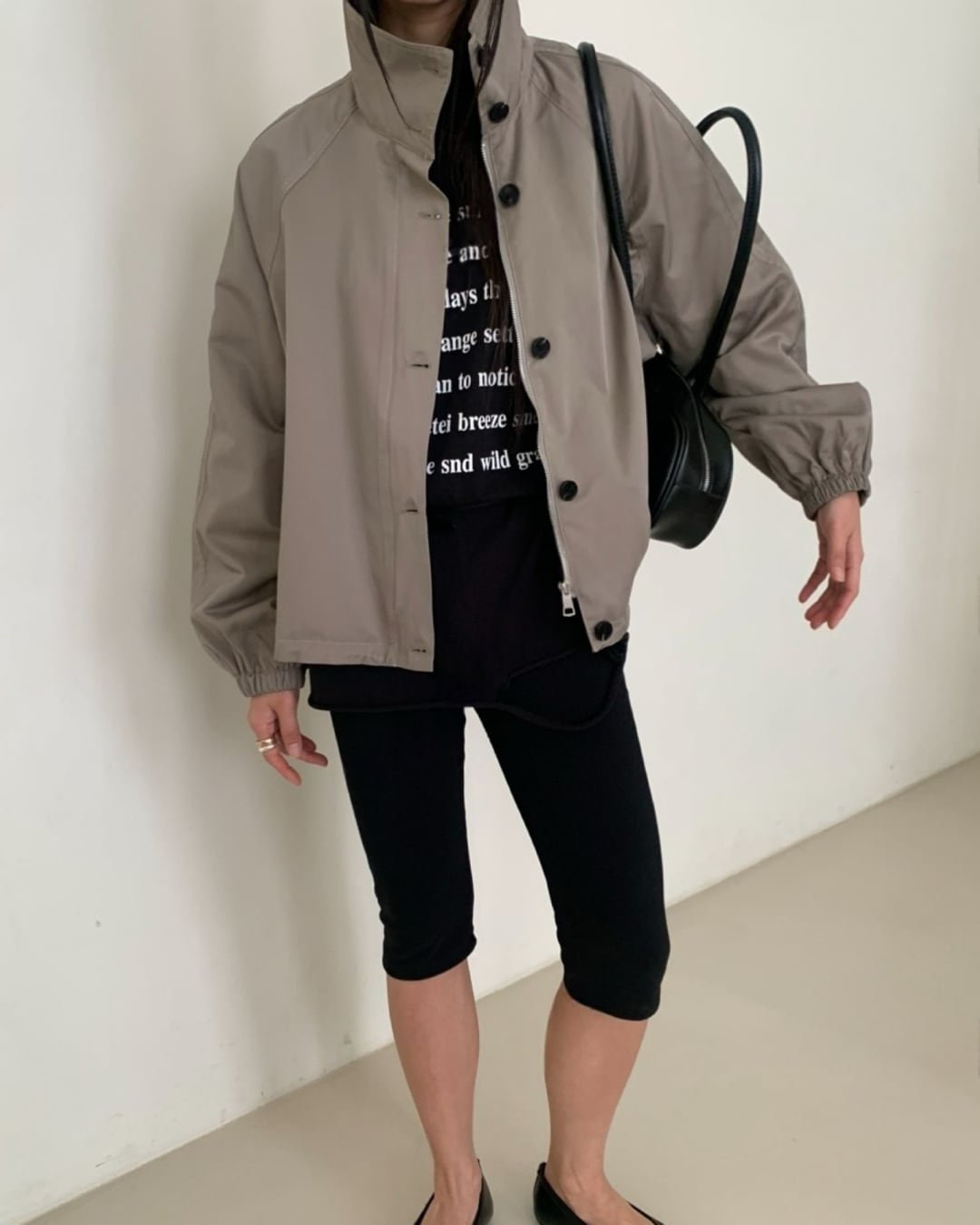 #ショートブルゾン #スタンドカラー #ボリュームスリーブ #カジュアルコーデ #大人カジュアル