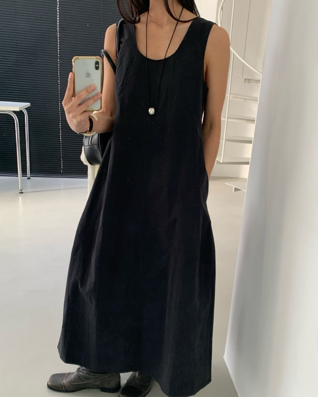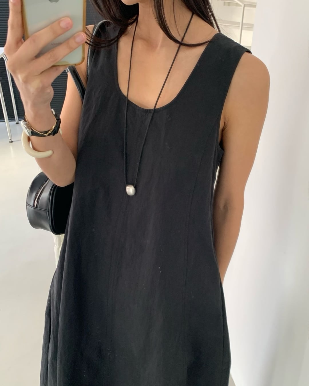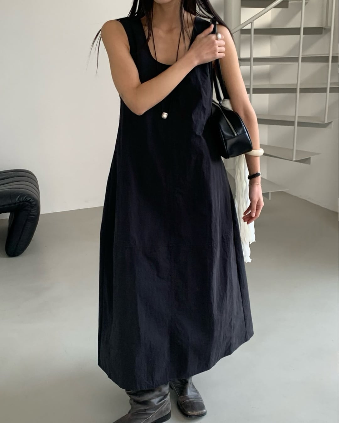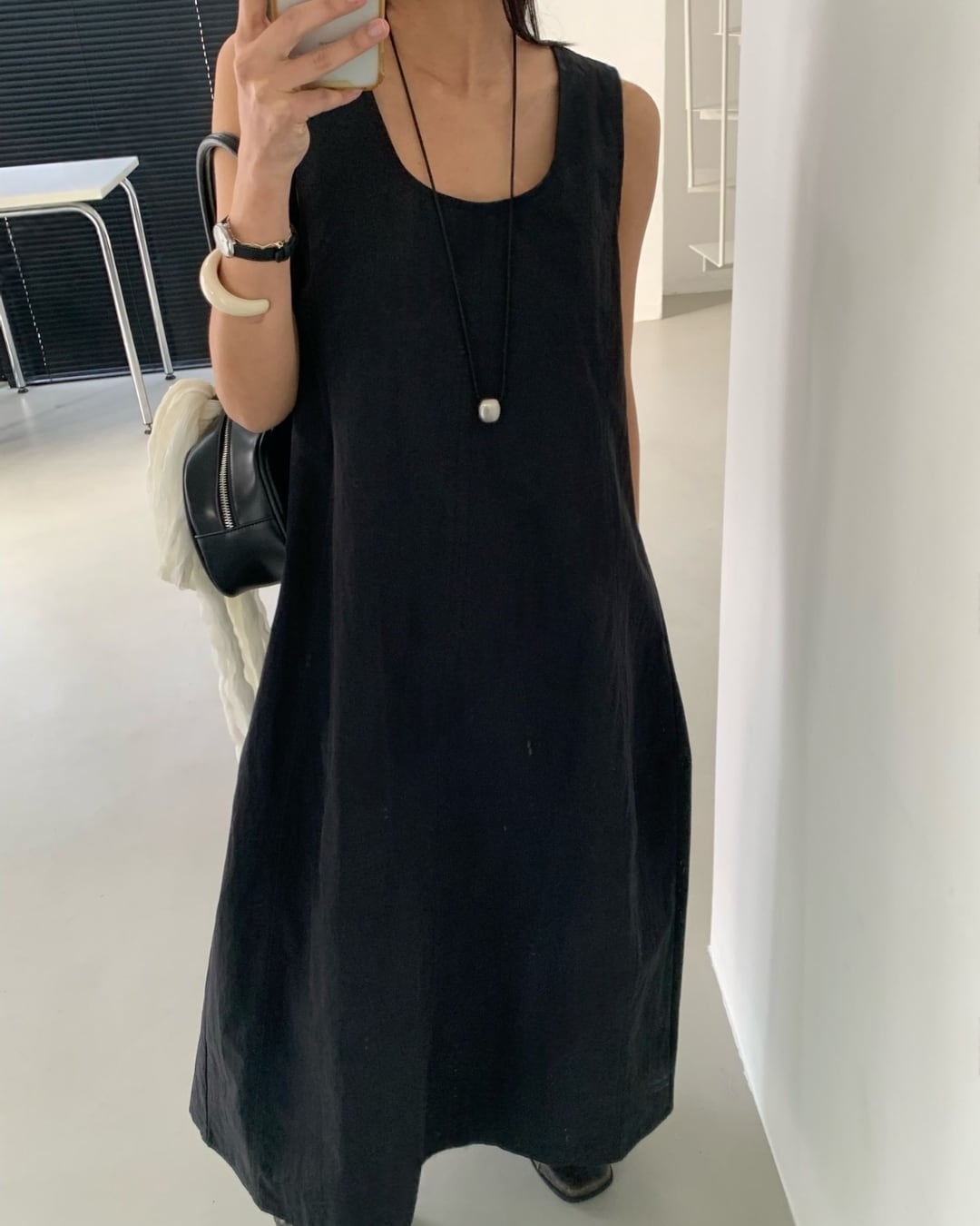 #ノースリーブ #ロングワンピース #Uネック #シンプルコーデ #大人カジュアル
