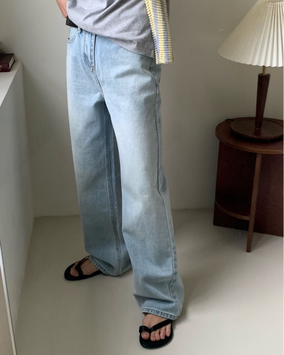 ライトデニムワイドストレートパンツ