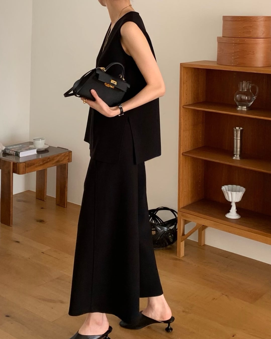 #ノースリーブ #Vネック #フレアトップス #きれいめコーデ #大人シンプル