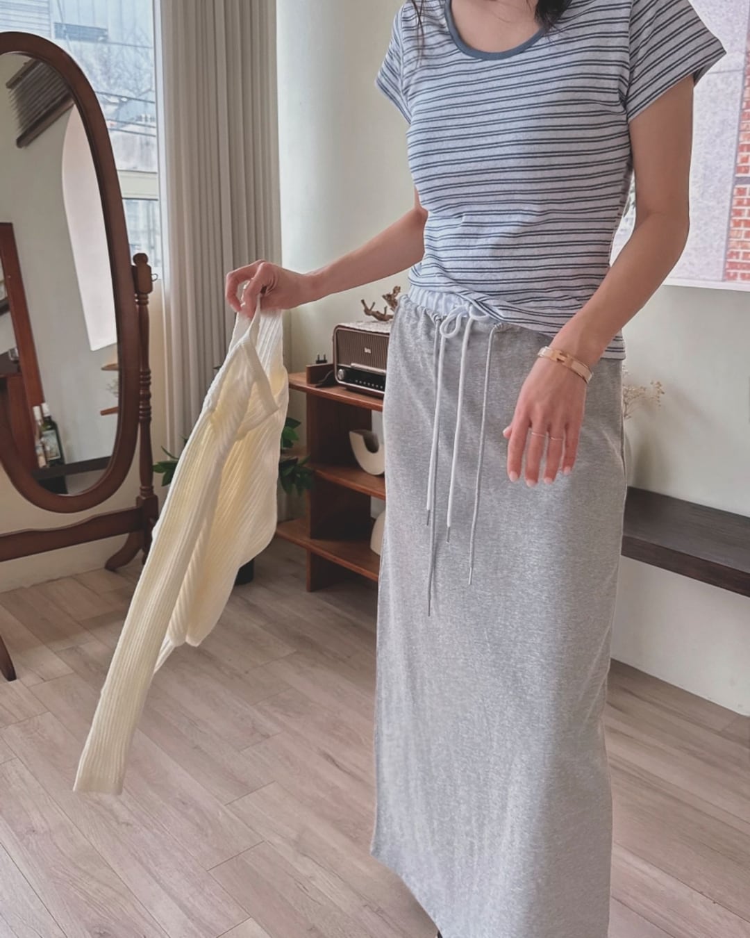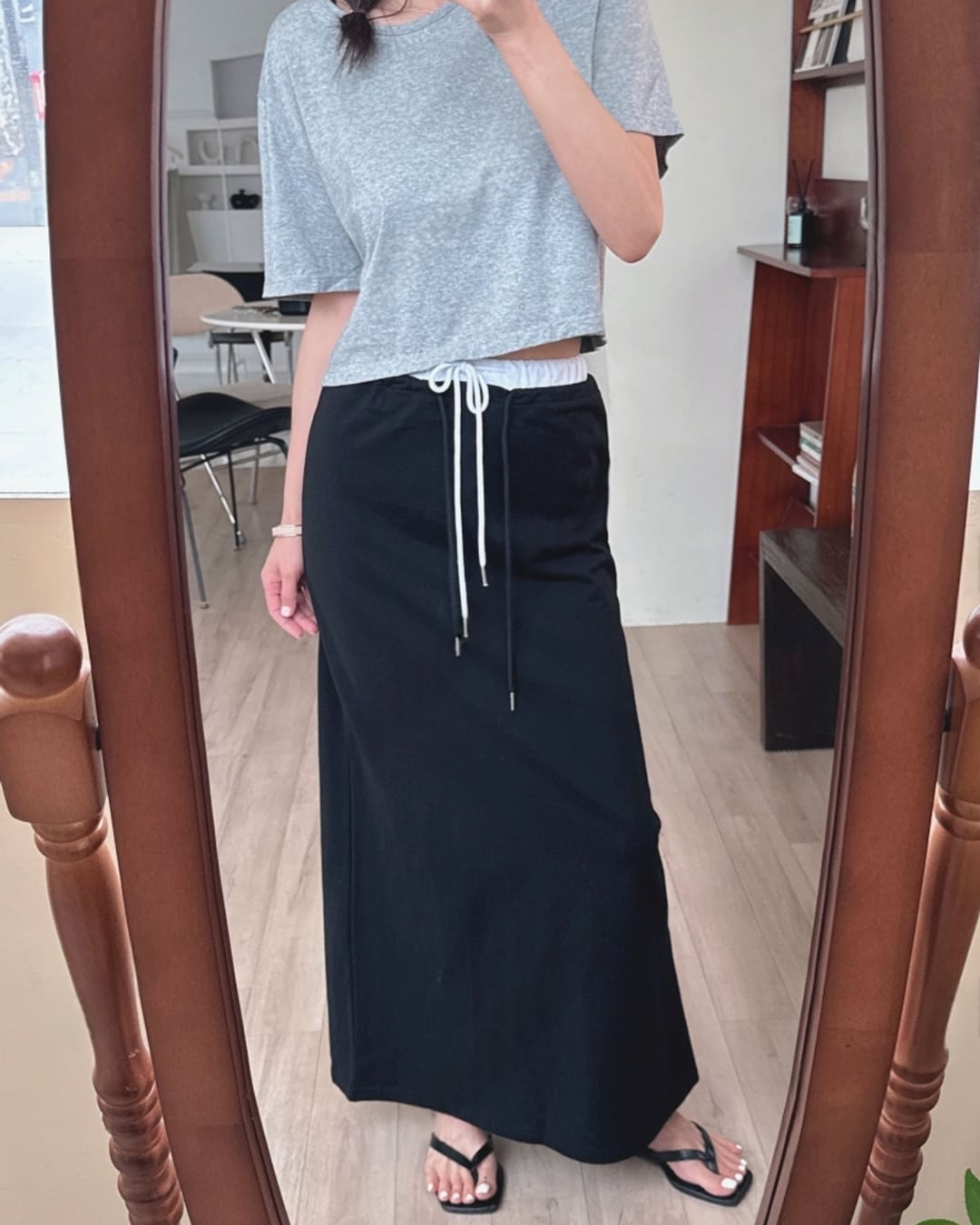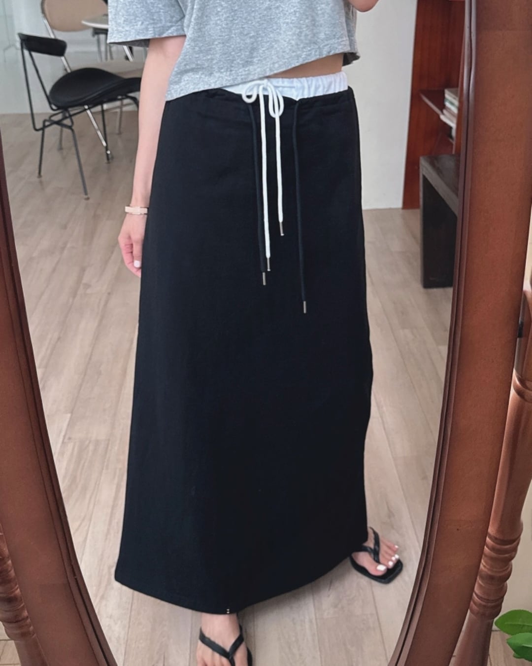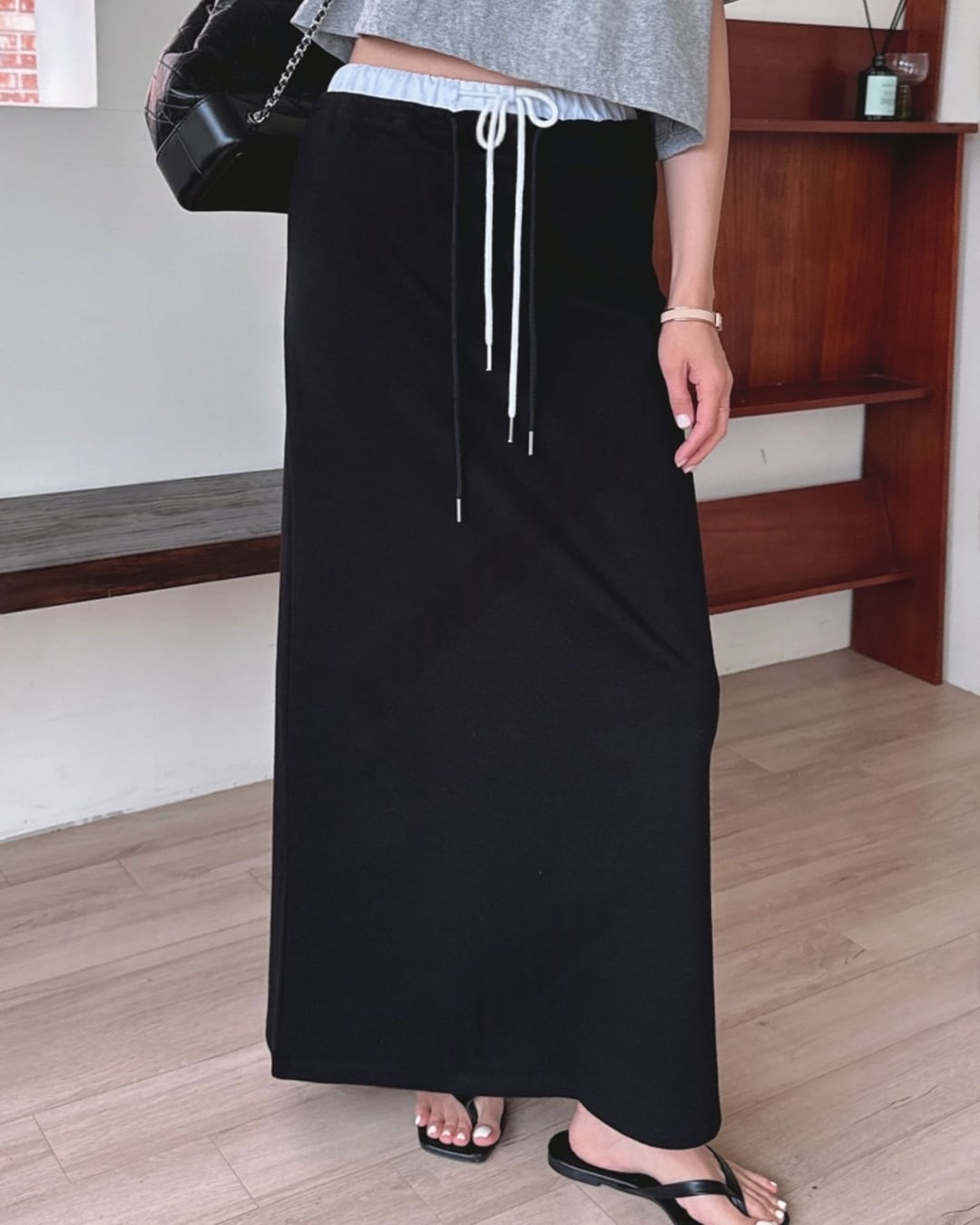 ドローストリングウエストロングスカート