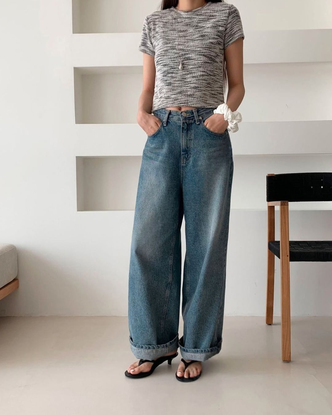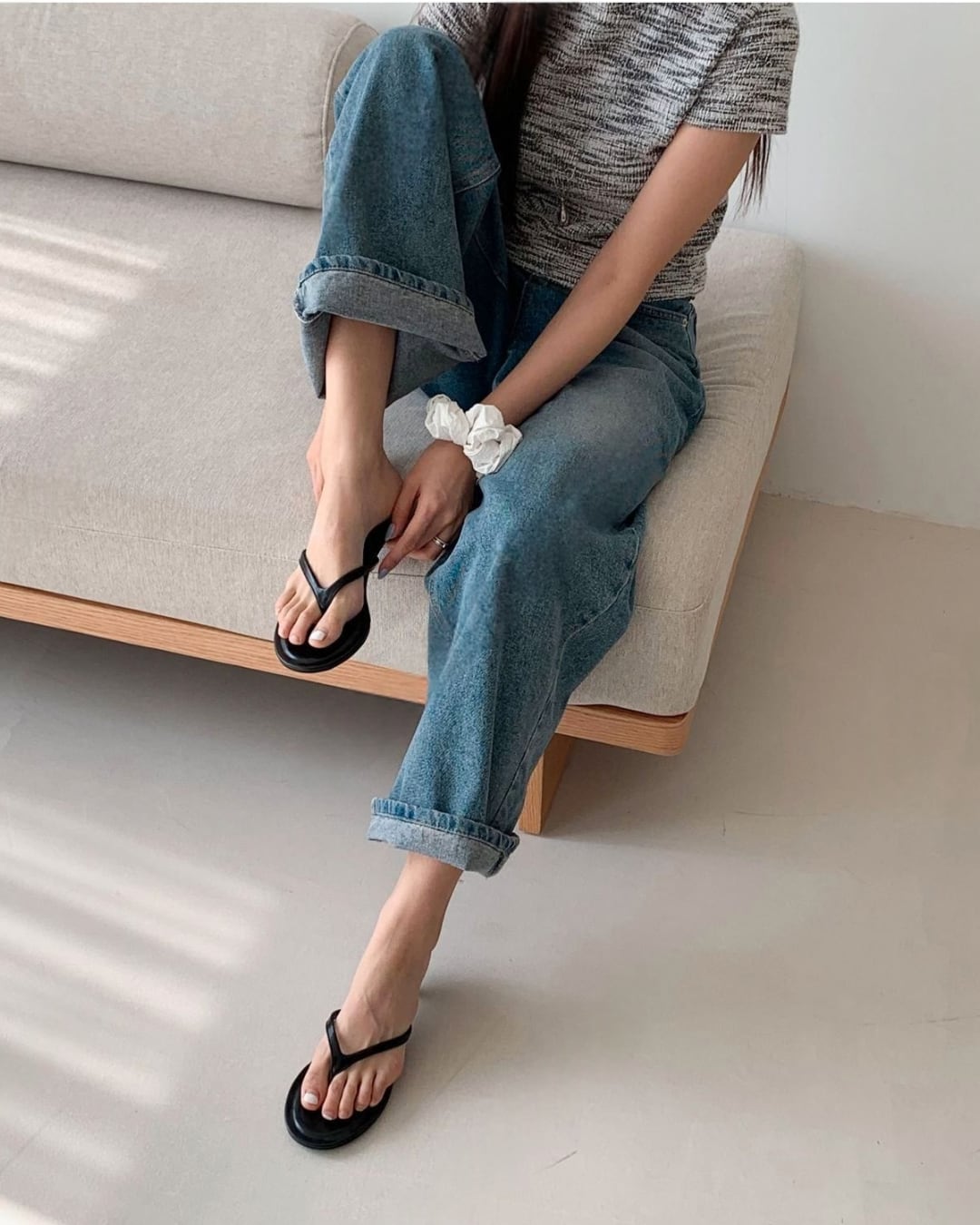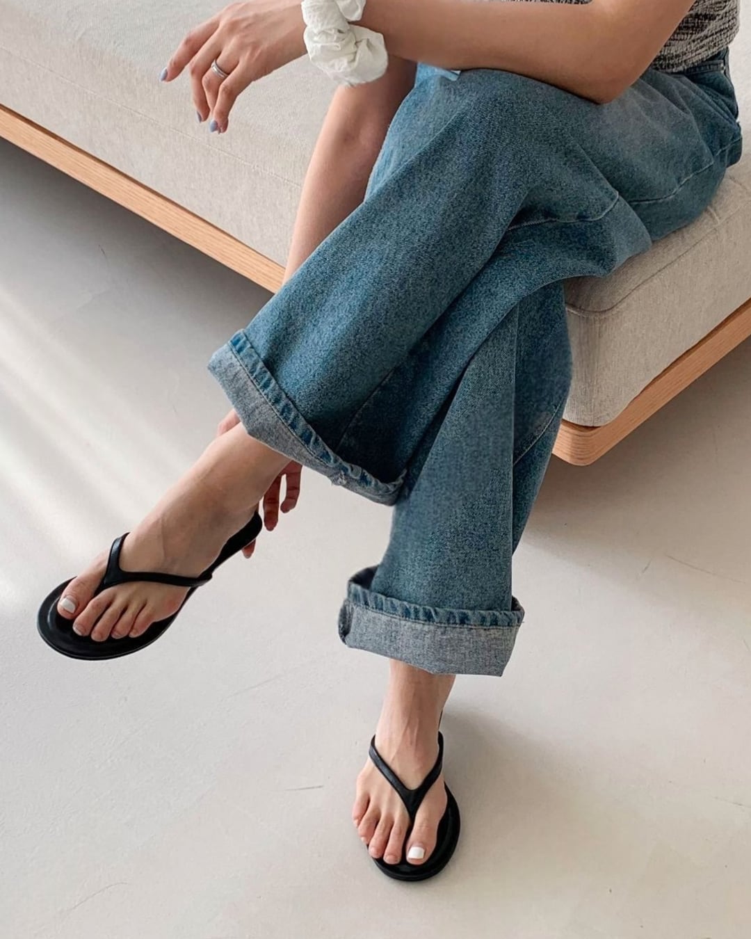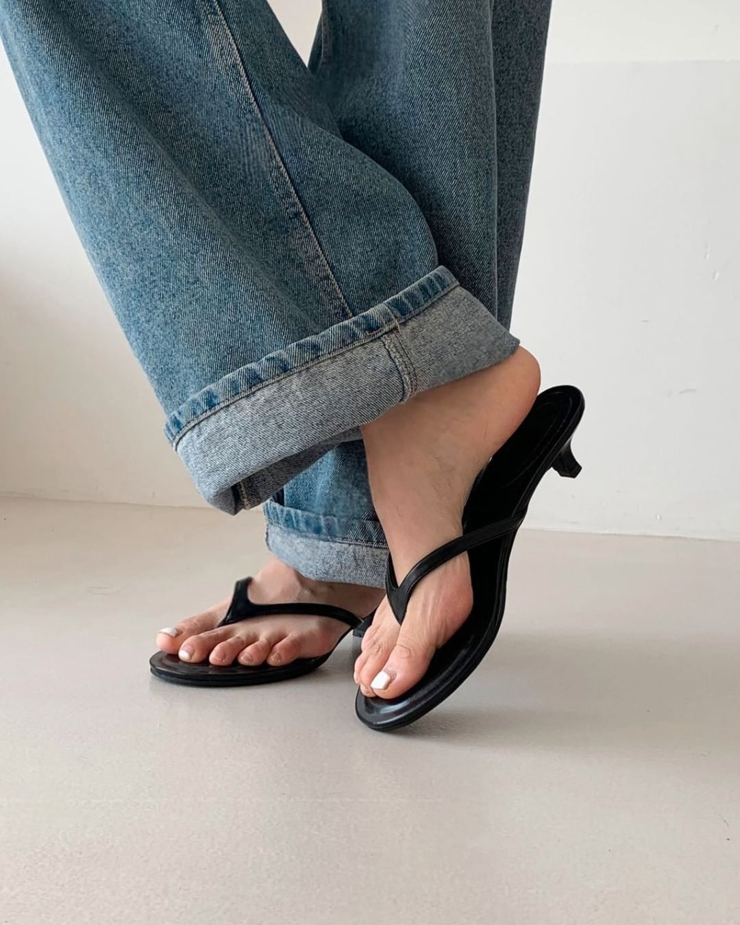 #トングサンダル #ミュール #ラウンドトゥ #大人カジュアル #シンプルコーデ