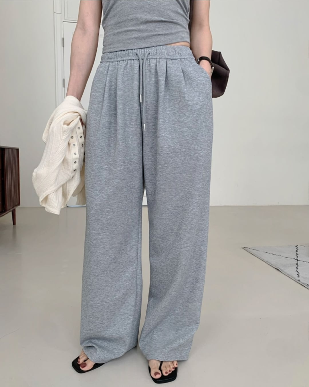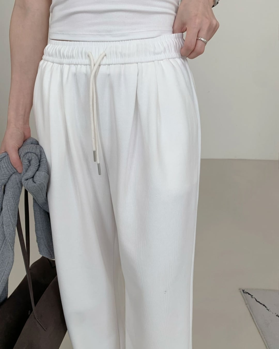 落ち感のあるやわらかな素材で仕立てた、抜け感たっぷりのワイドイージーパンツ。ゆったりとしたシルエットとウエストゴム仕様でストレスフリーな穿き心地が魅力です。ドローストリング付きでサイズ調整もしやすく、デイリーからお出かけまで幅広く活躍。トップスを選ばず、こなれた大人カジュアルコーデが完成する万能アイテムです。