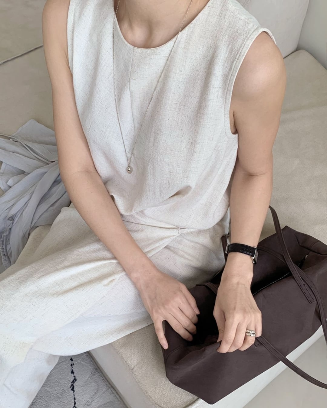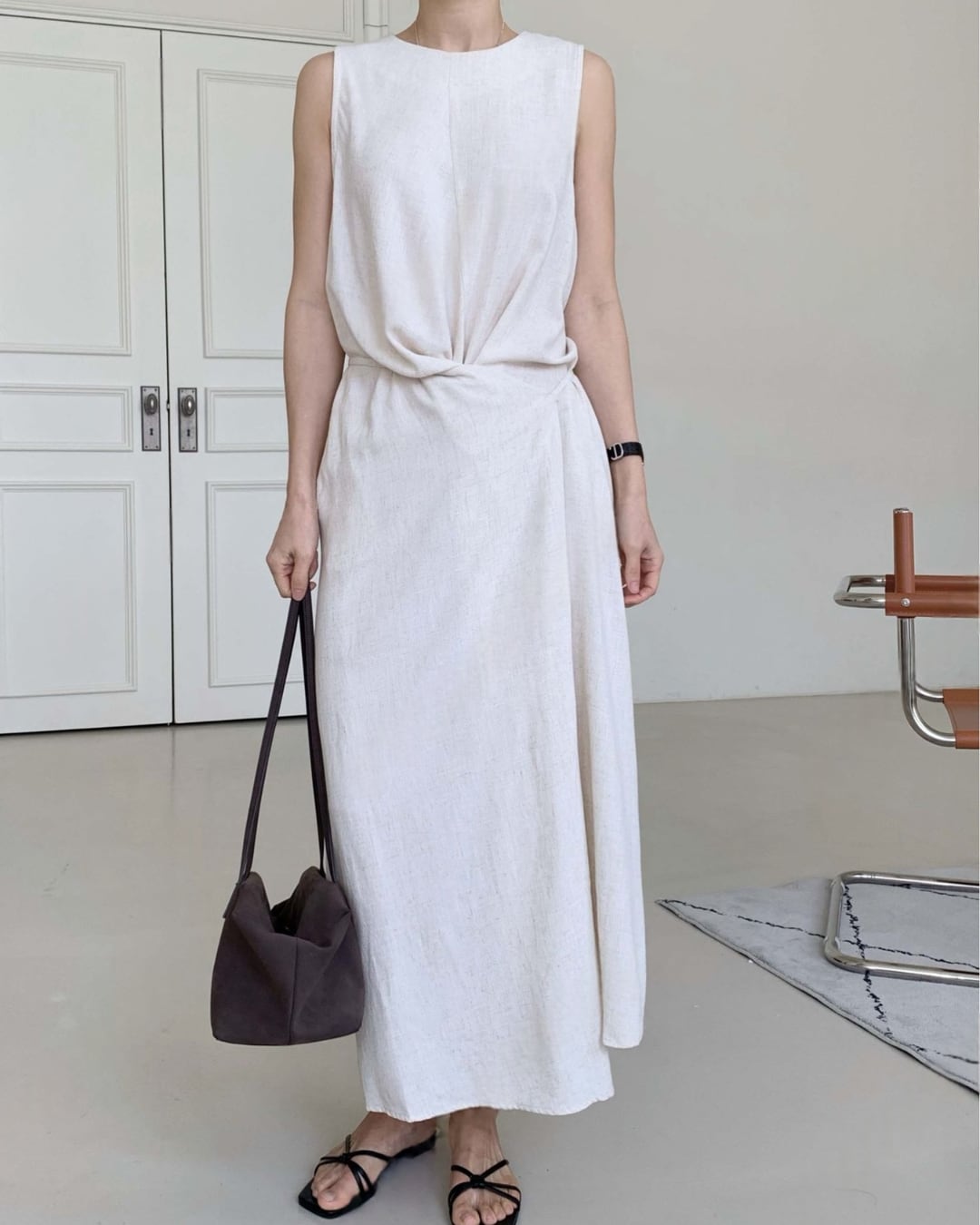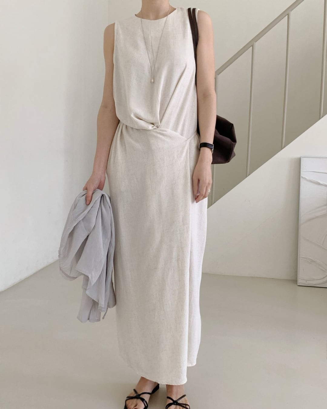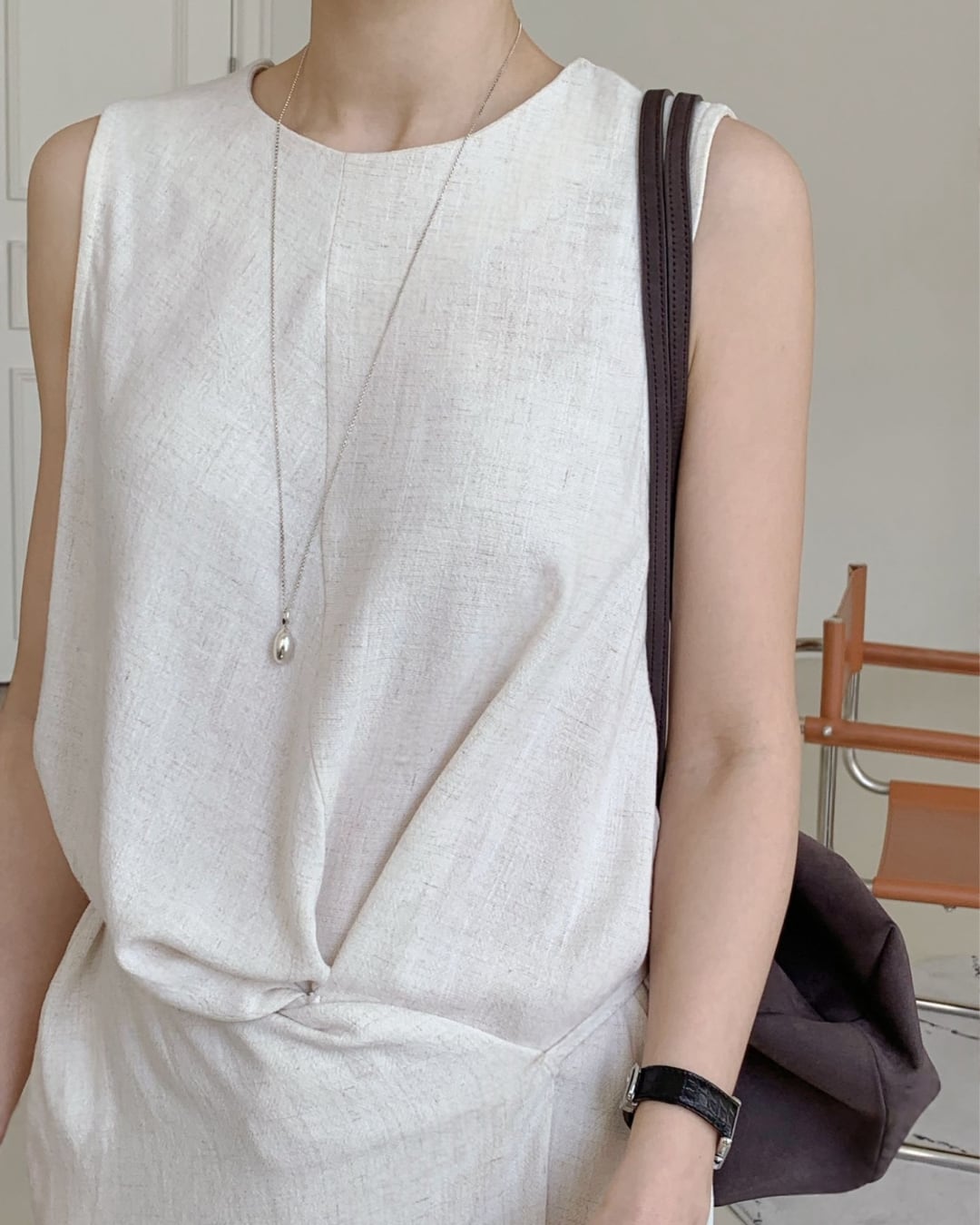 #ノースリーブワンピース #リネンタッチ #Iラインワンピース #きれいめコーデ #大人カジュアル