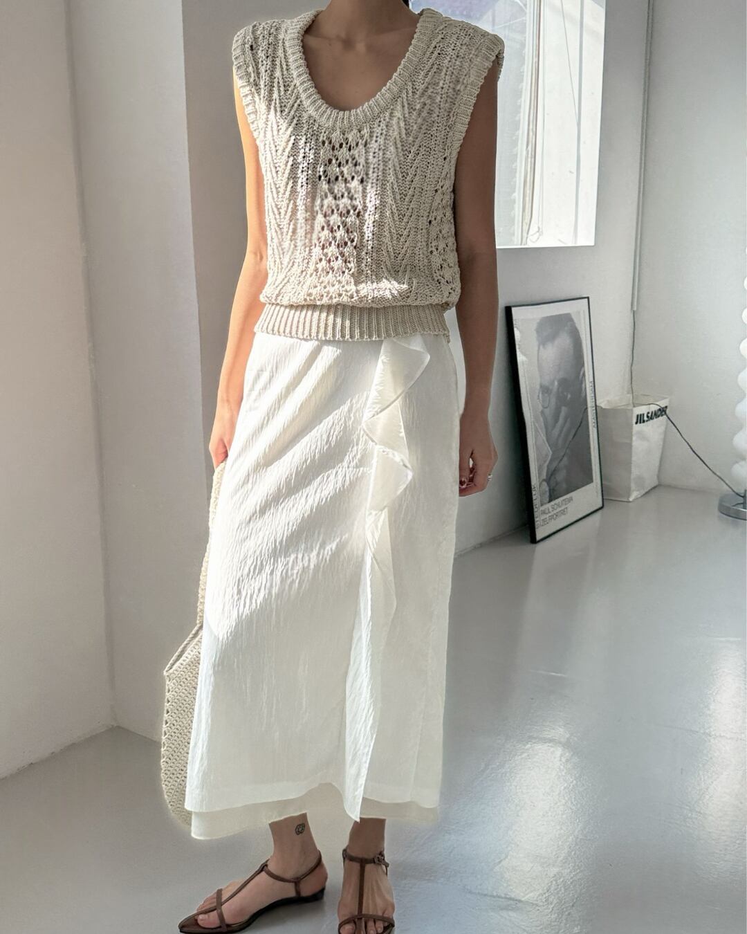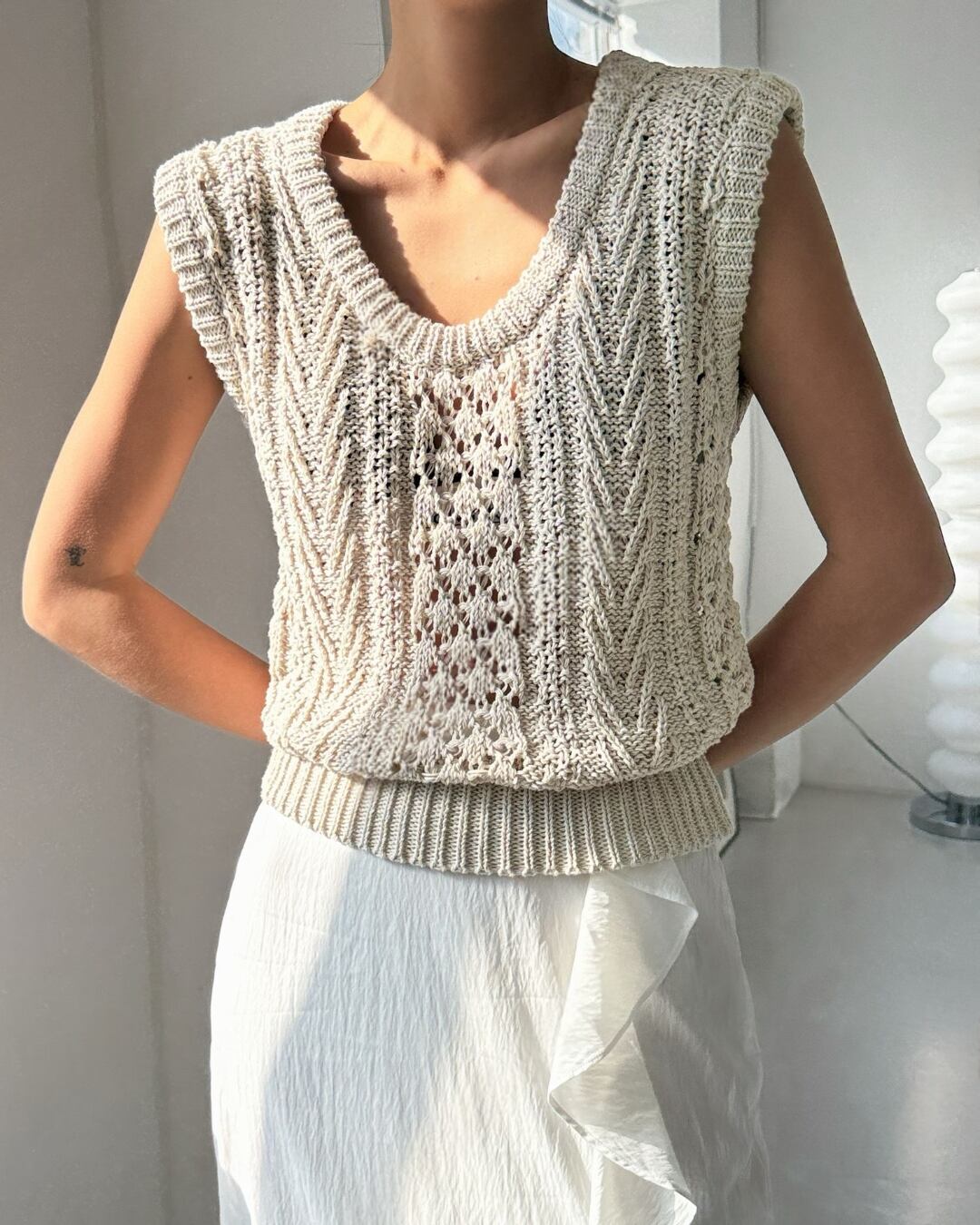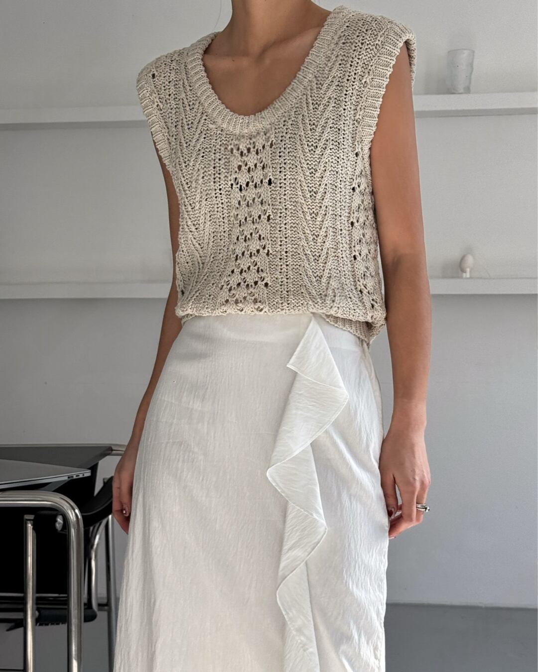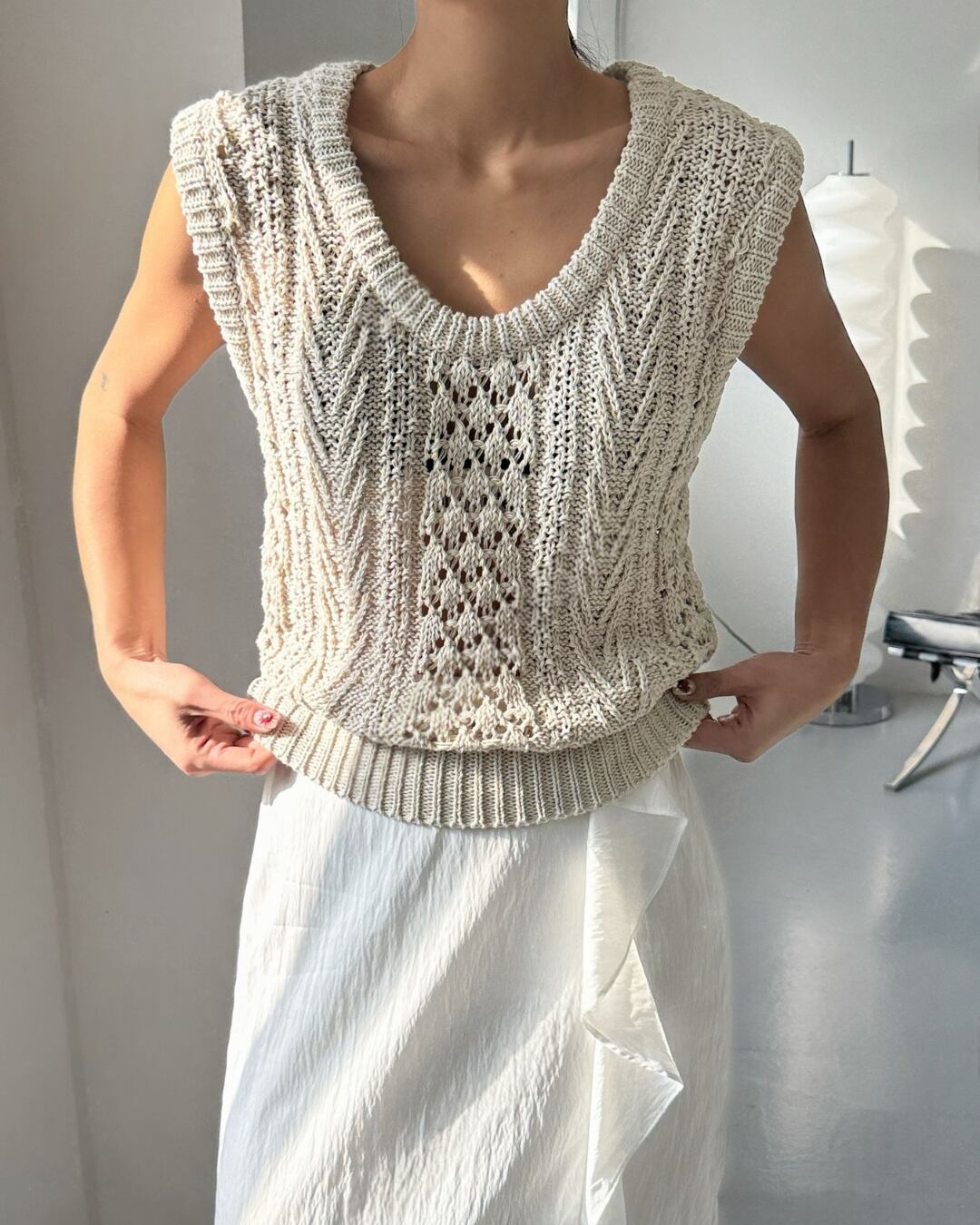 #ニットベスト #透かし編み #ノースリーブ #レイヤードコーデ #コットンニット
