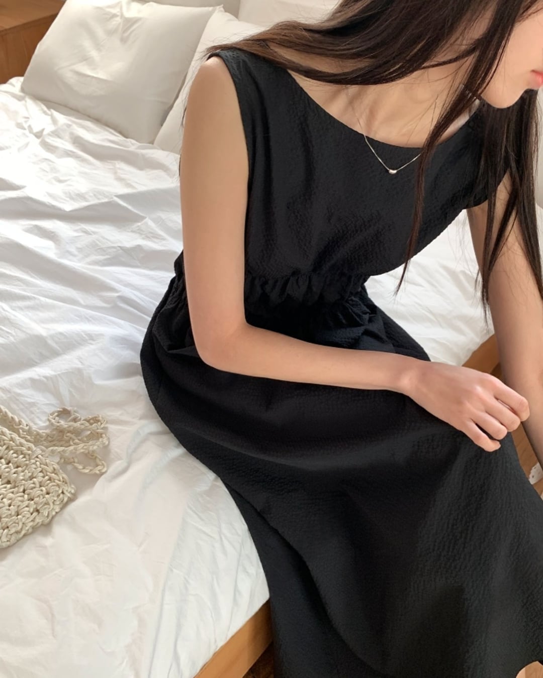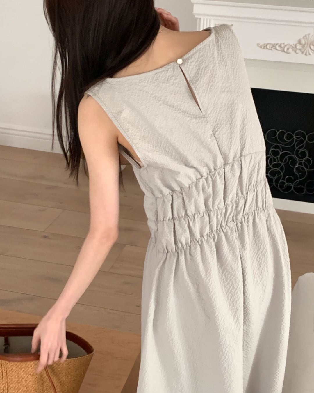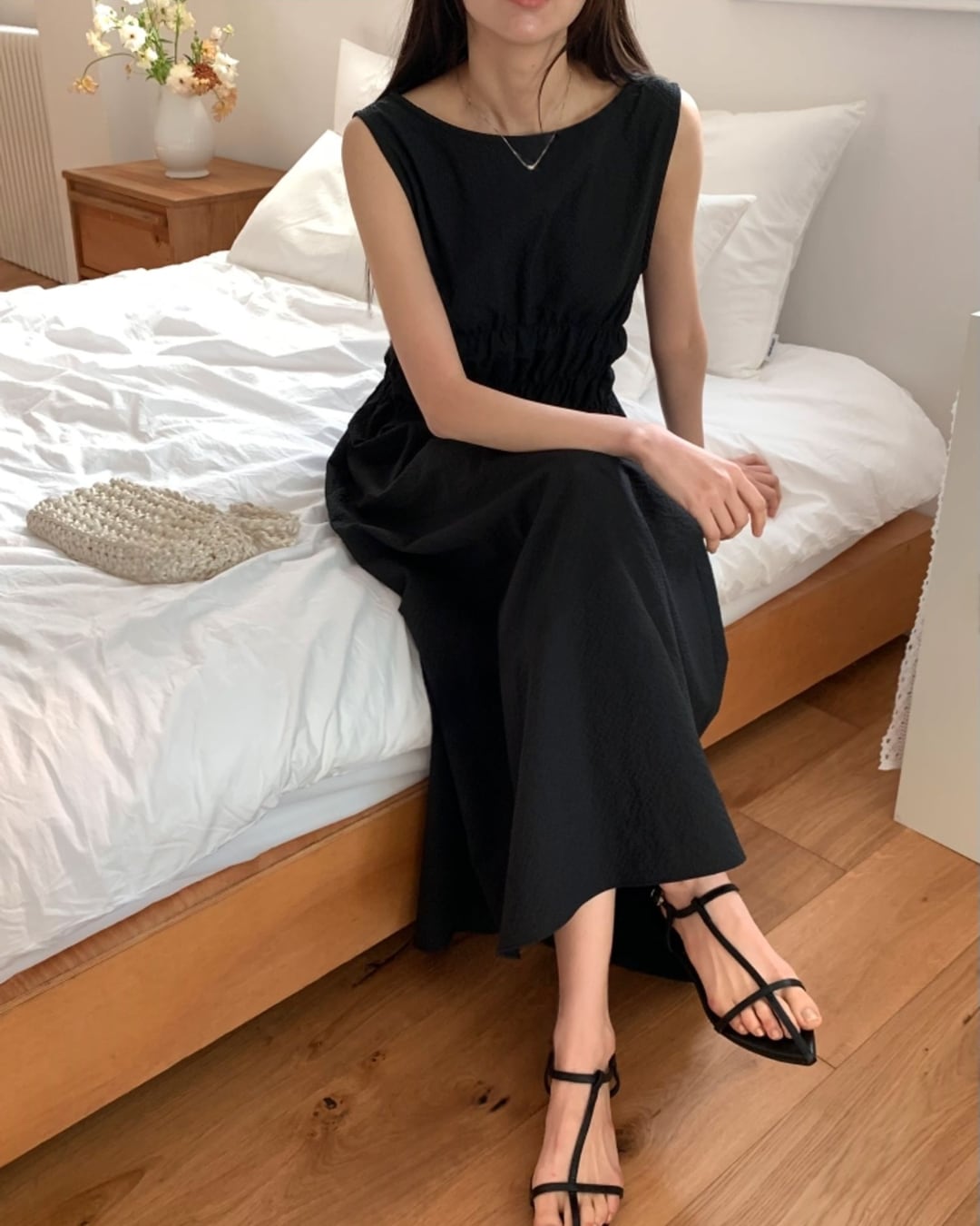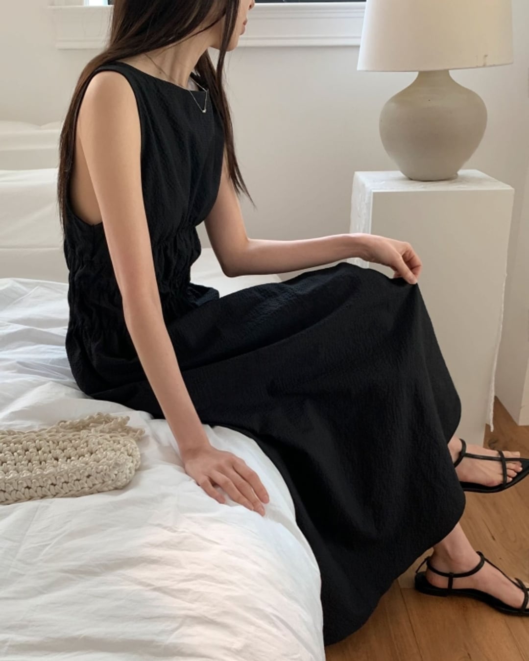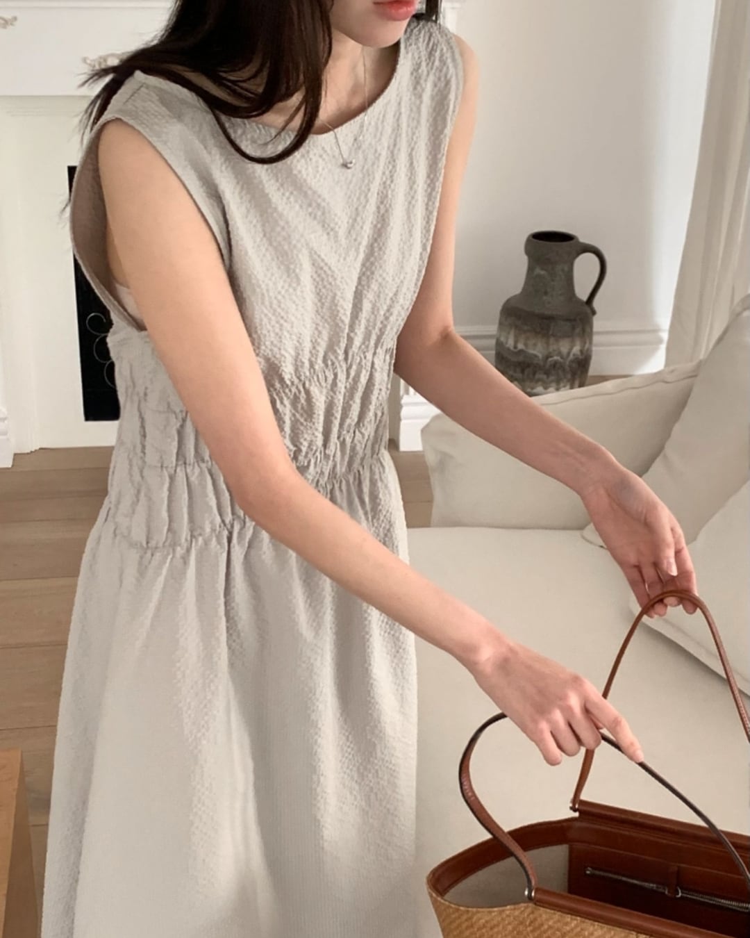 #ロングワンピース #ノースリーブワンピース #シャーリングワンピース #フレアワンピース #大人カジュアル