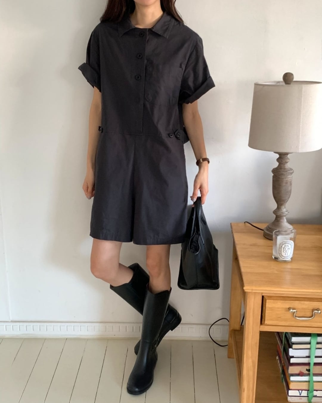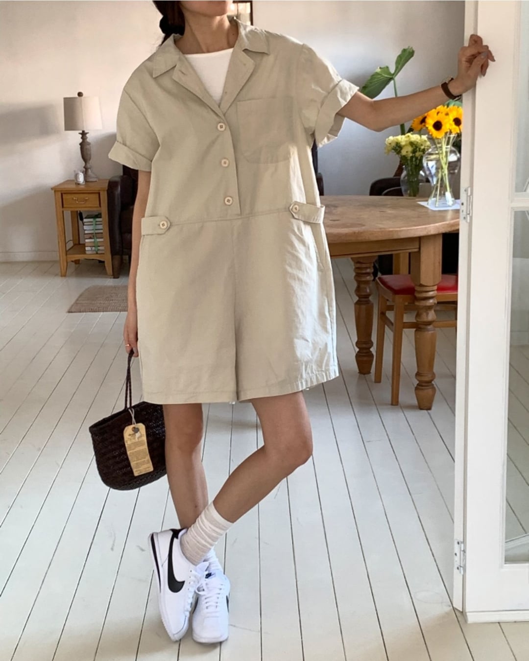 #オールインワン #ショートパンツ #半袖ロンパース #大人カジュアル #コットンコーデ