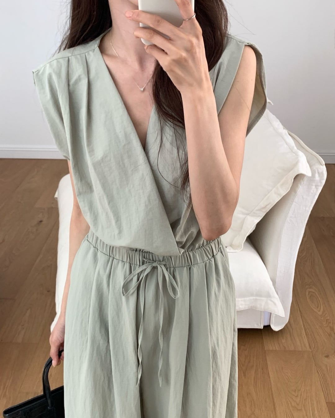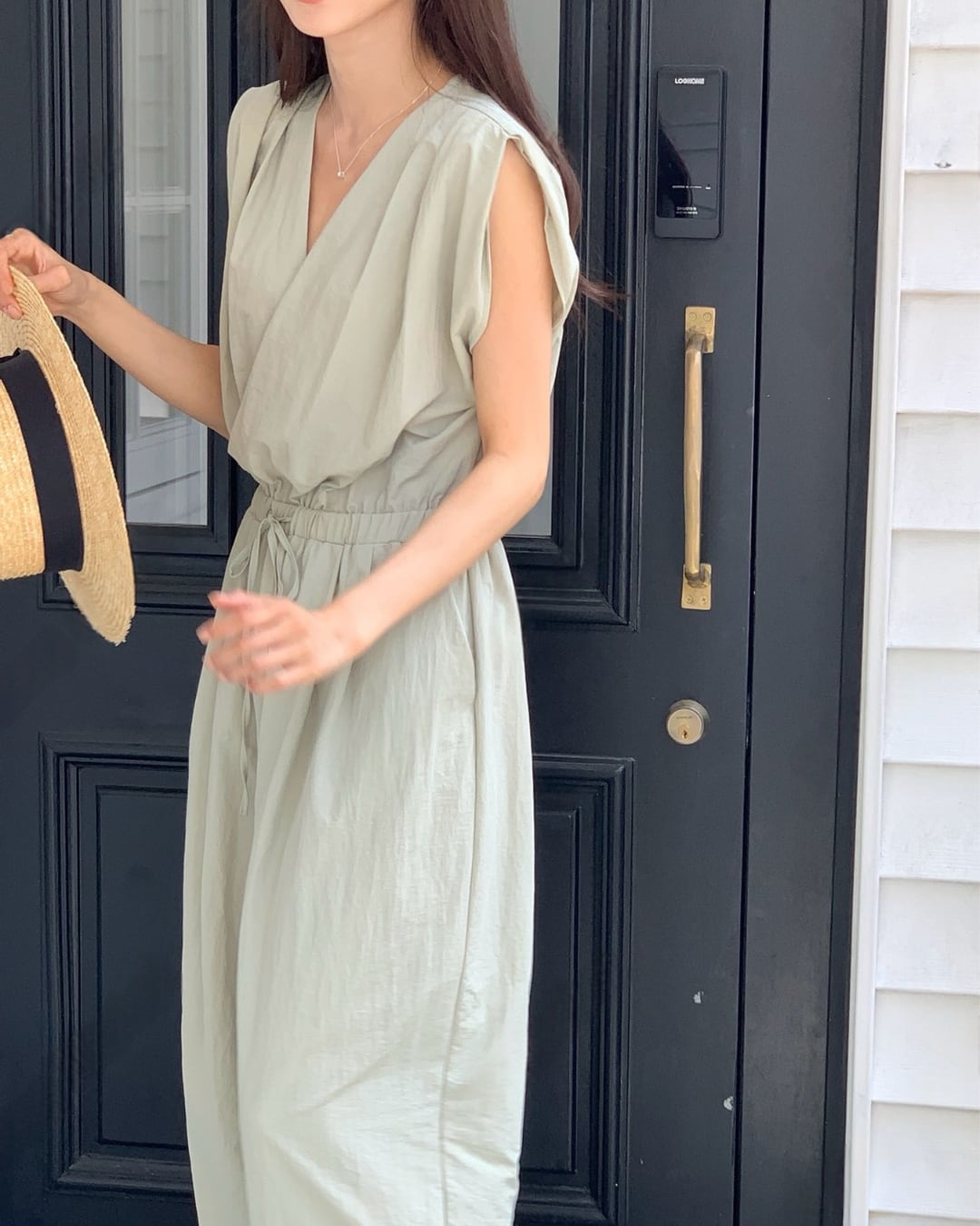 #オールインワン #ジャンプスーツ #カシュクール #ナイロン素材 #大人カジュアル