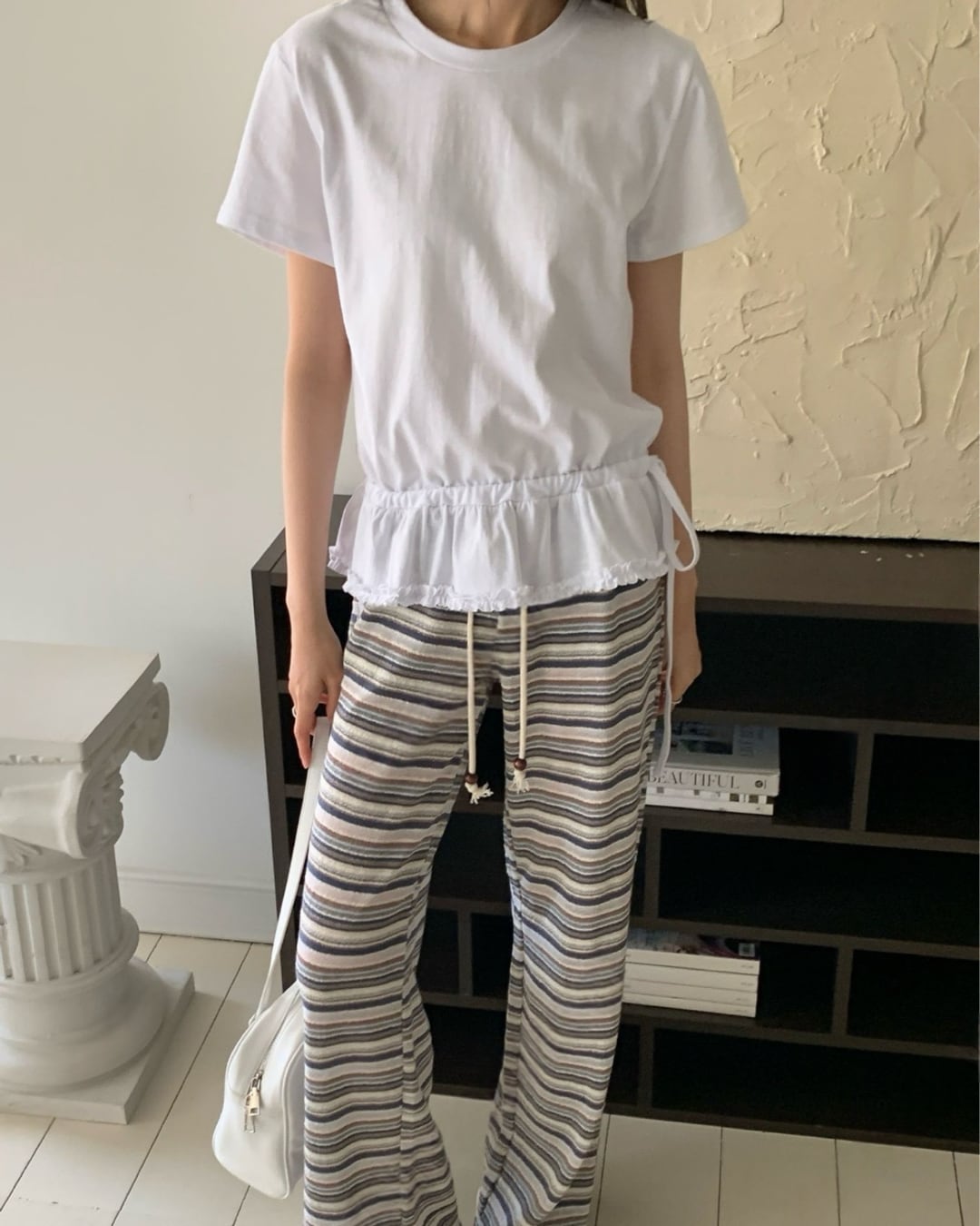 ドローストリングフリルTシャツ