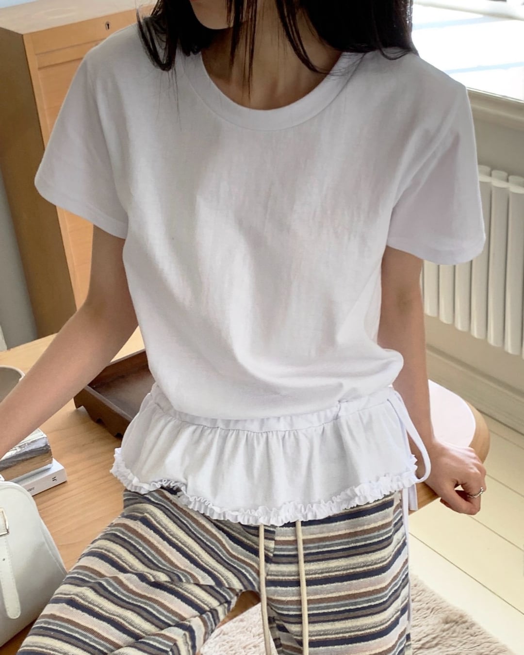 #フリル #リボン #半袖トップス #ドローストリング #着回しコーデ