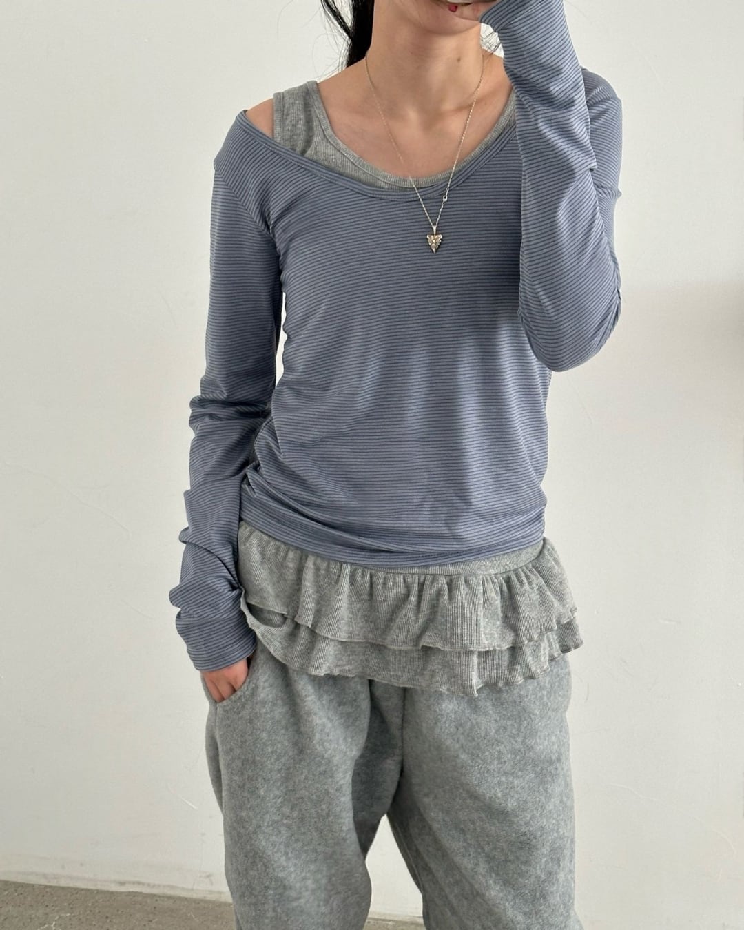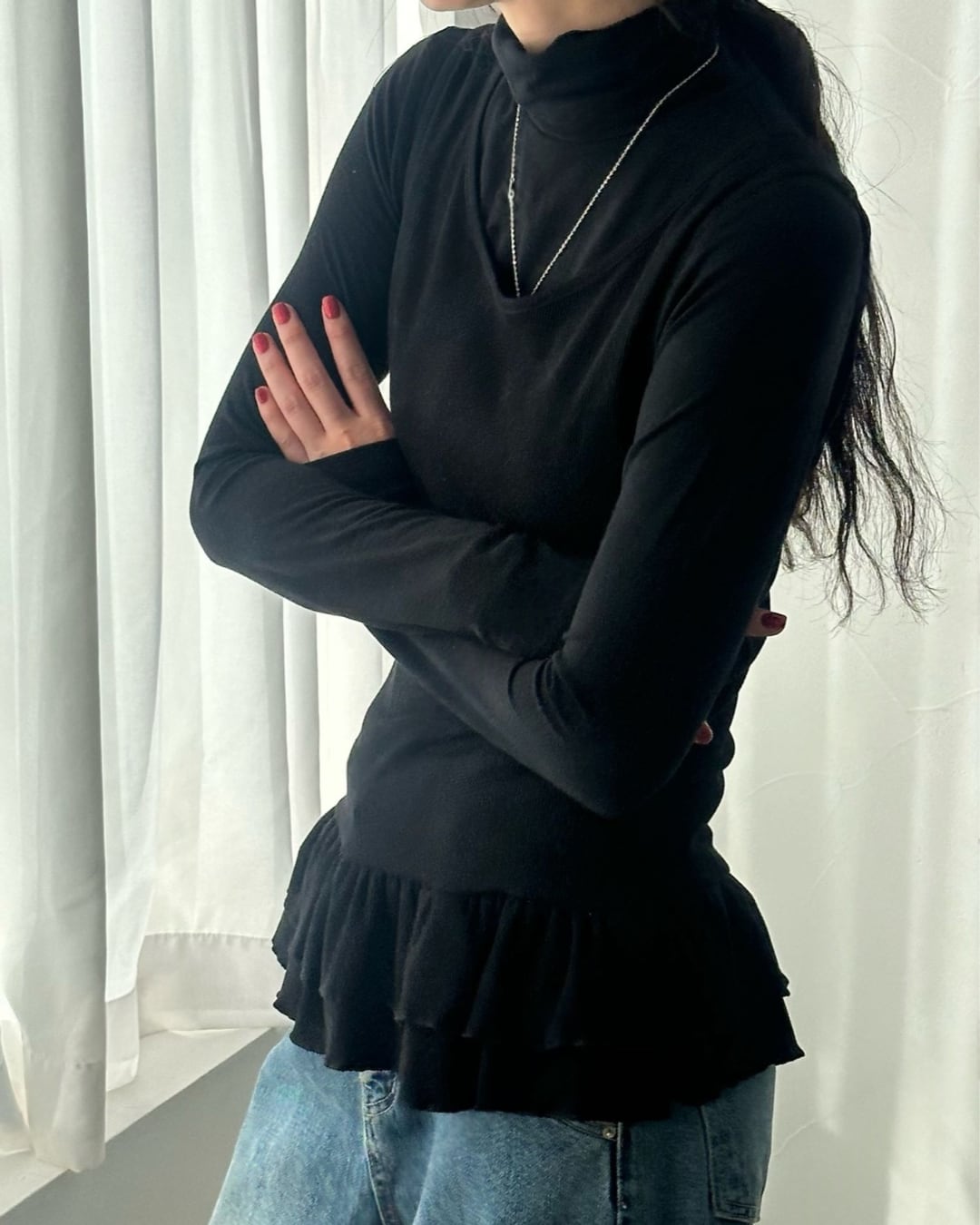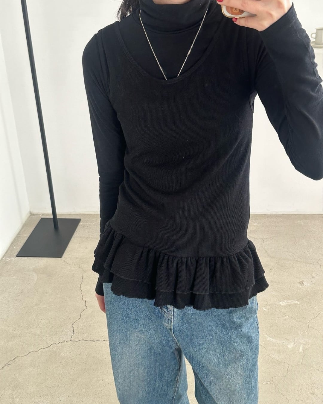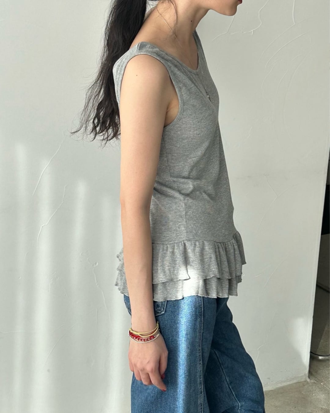 #タンクトップ #リブトップス #フリル #レイヤード #大人カジュアル