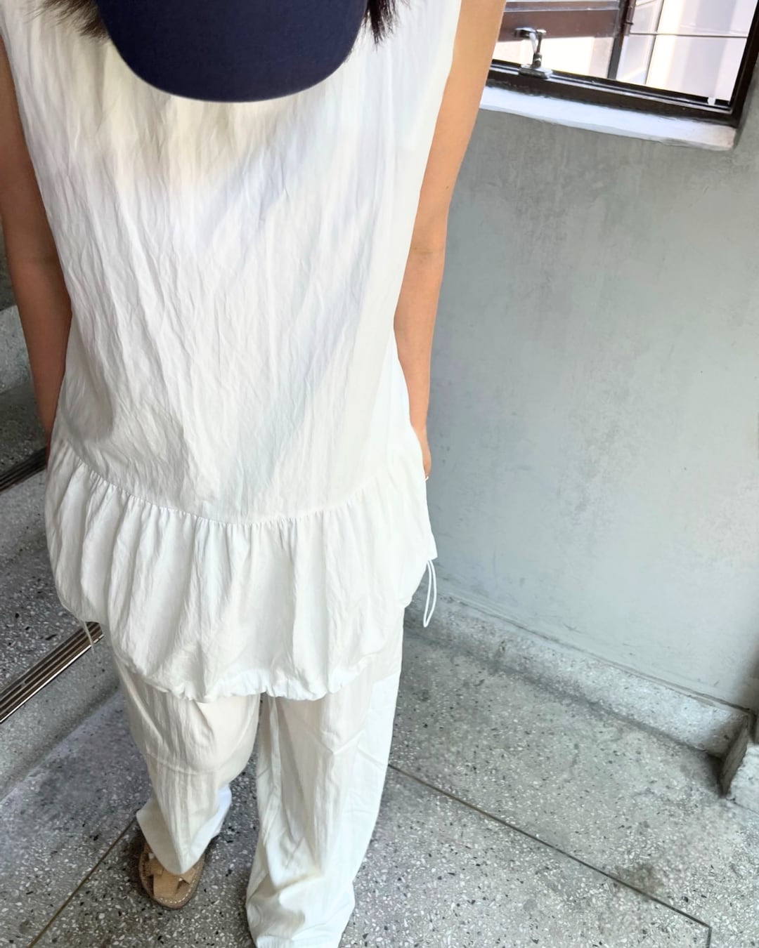 #ミニワンピース #バルーンヘム #ノースリーブ #レイヤードコーデ #大人カジュアル