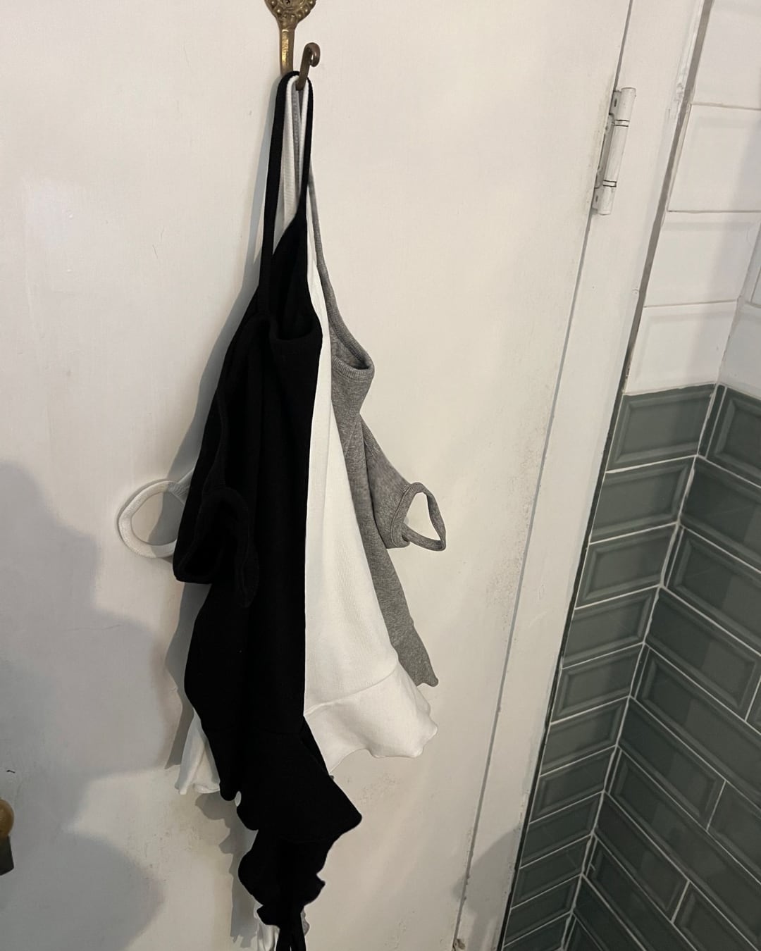 動きのあるアシンメトリーフリルが目を惹く、存在感たっぷりのキャミソールトップス。華奢なストラップとすっきりとしたシルエットで、女性らしい抜け感を演出します。伸縮性のあるやわらかなリブ素材で着心地も良く、スウェットやニットとのレイヤードにも最適。シンプルなボトムに合わせるだけでこなれたスタイリングが完成する一枚です。