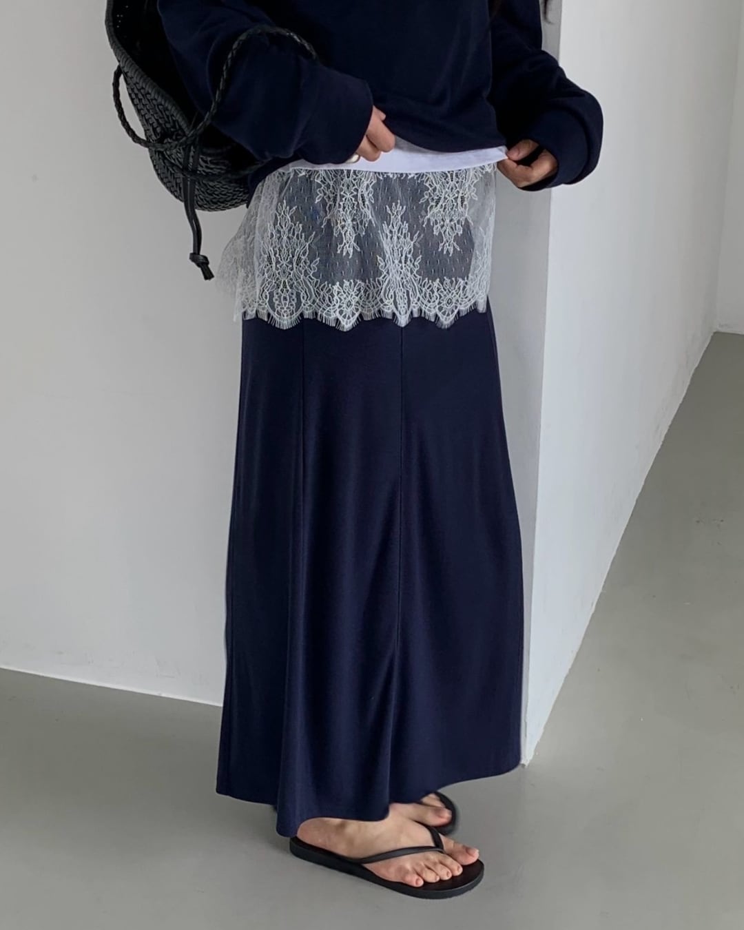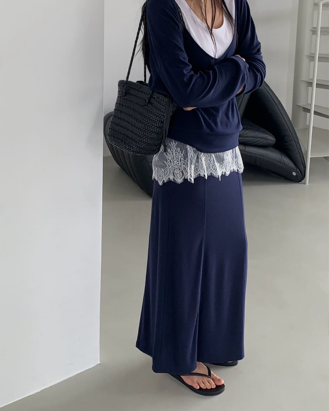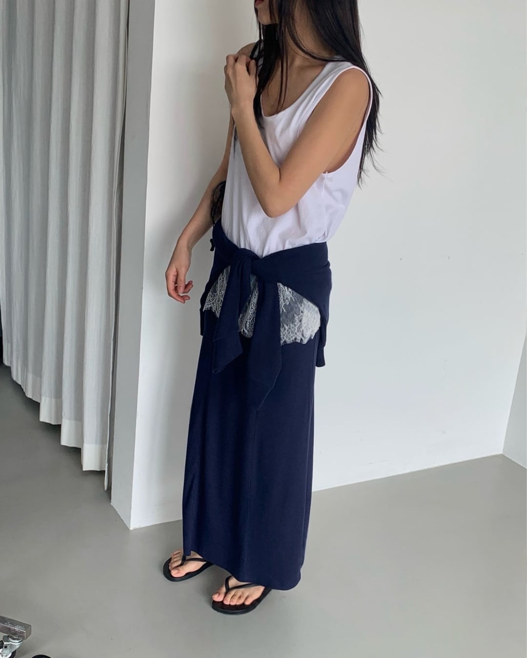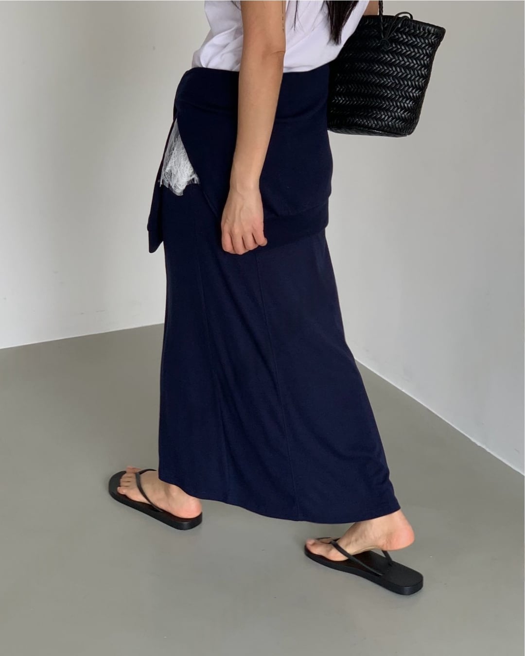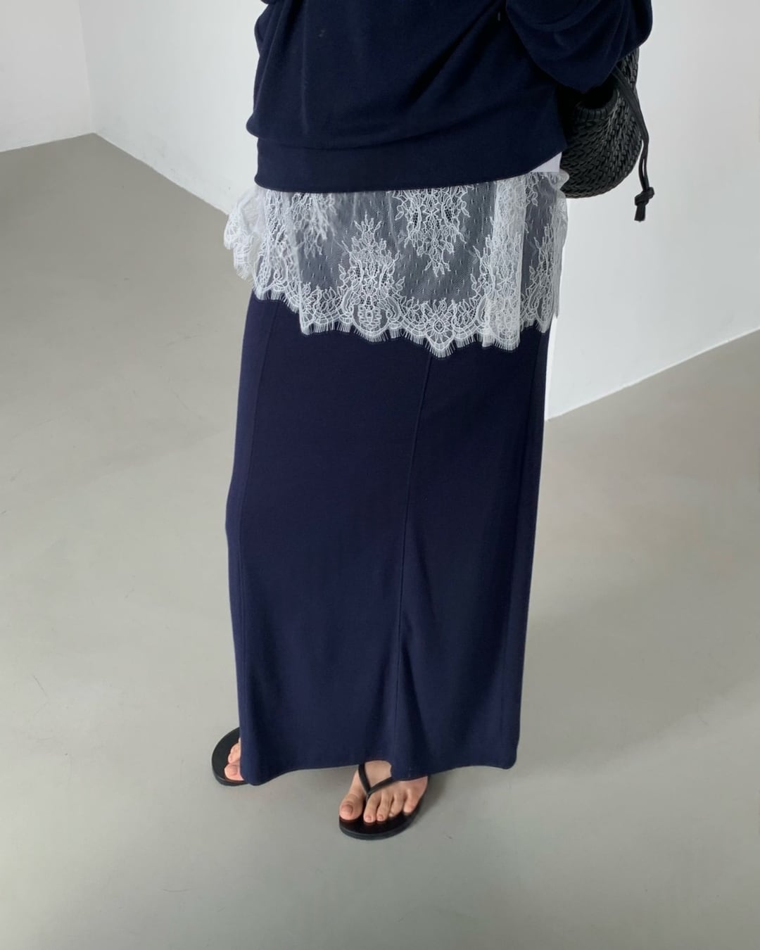 すっきりとした縦ラインを演出するロング丈スカート。落ち感のある柔らかな素材で、身体のラインを拾いすぎず上品なシルエットに仕上げました。ウエストはすっきり見えしながら快適な穿き心地で、トップスを選ばず着回ししやすい万能アイテム。カジュアルからきれいめまで幅広いスタイリングに活躍します。