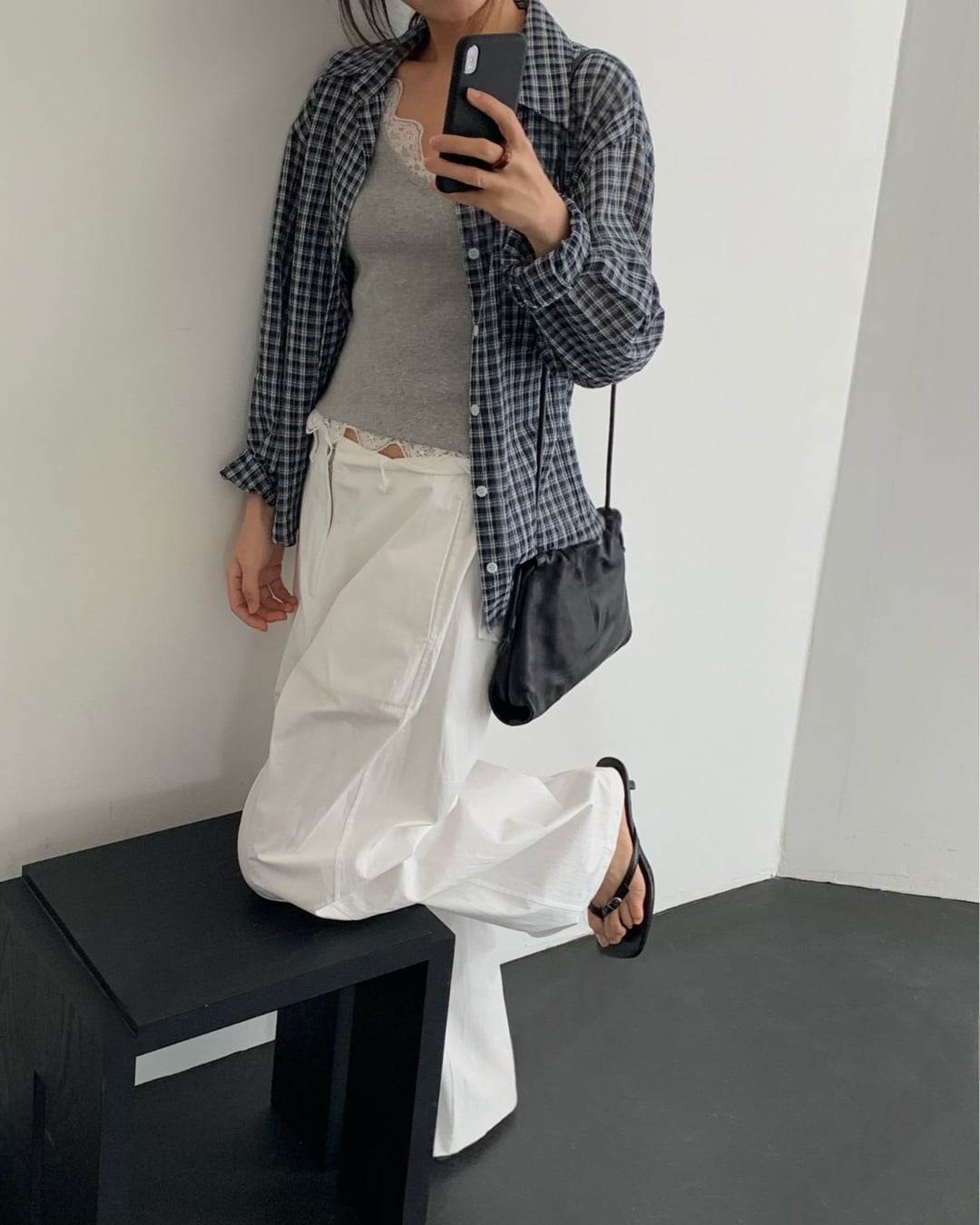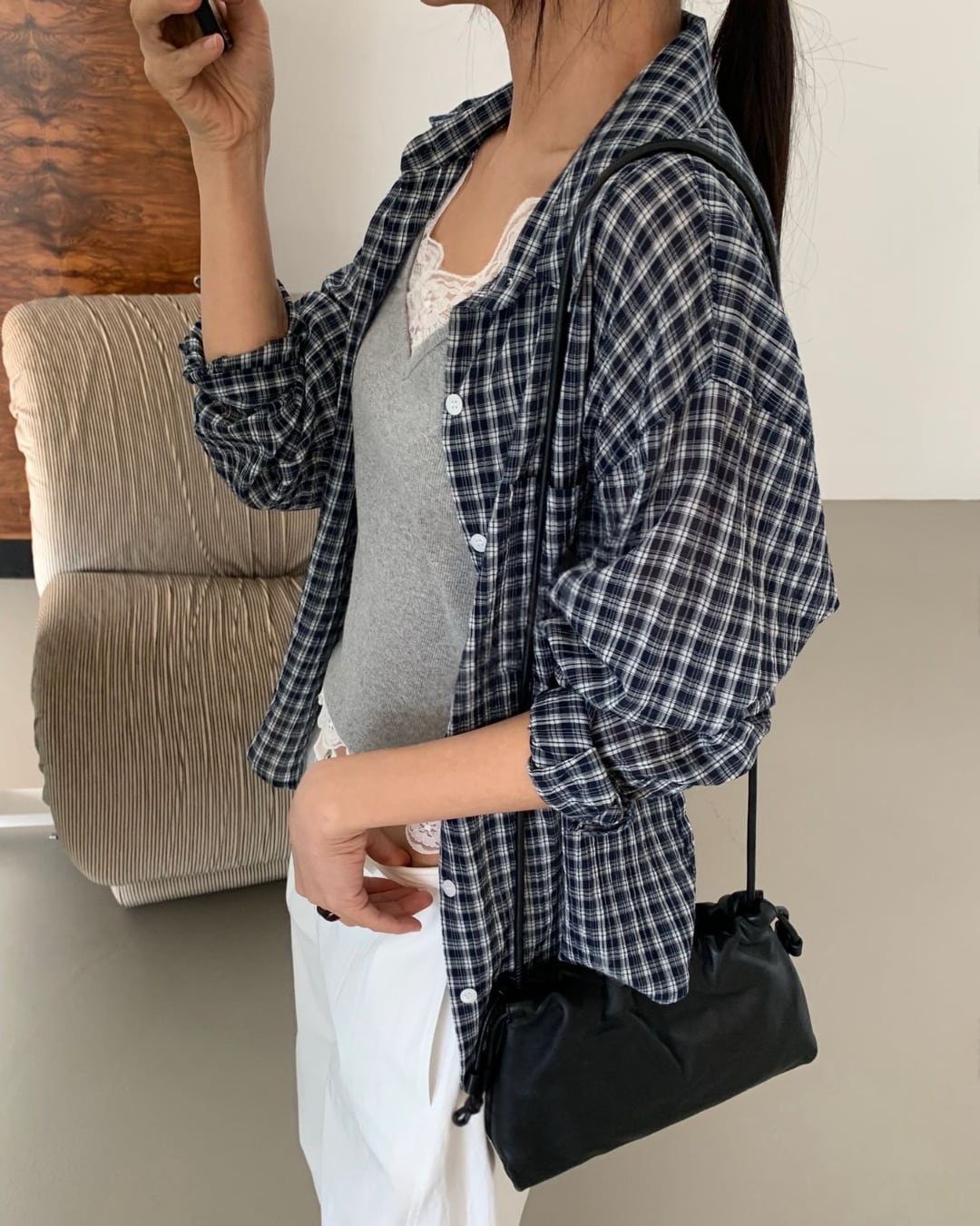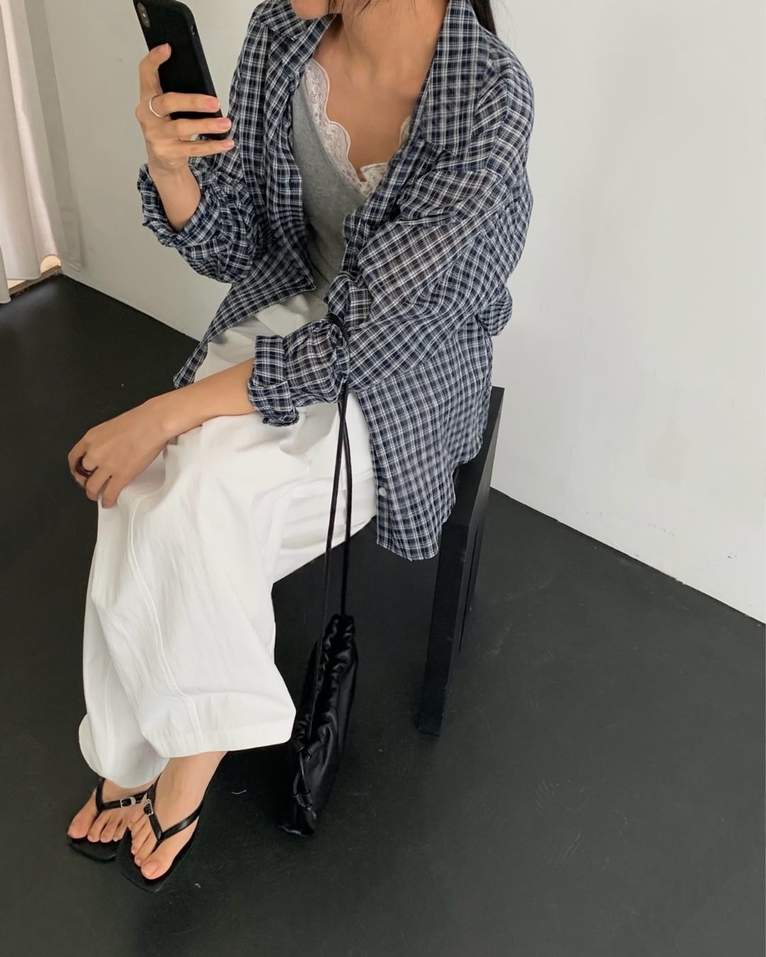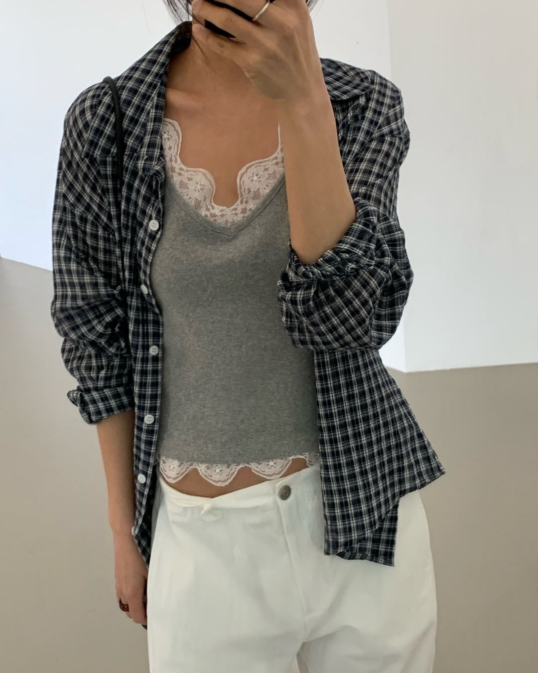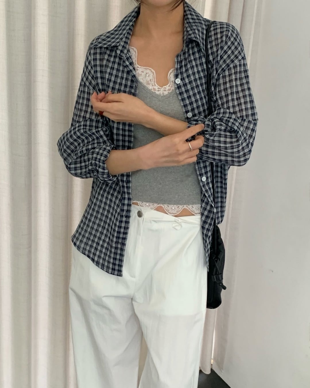 #チェックシャツ #バックリボン #羽織りコーデ #コットンシャツ #大人カジュアル