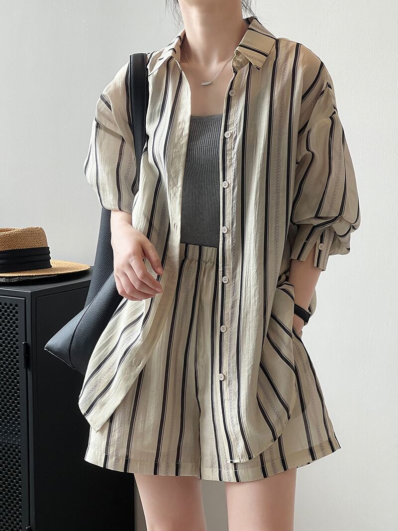 #柄 #お出かけ #ストライプ #シャツ #シアー