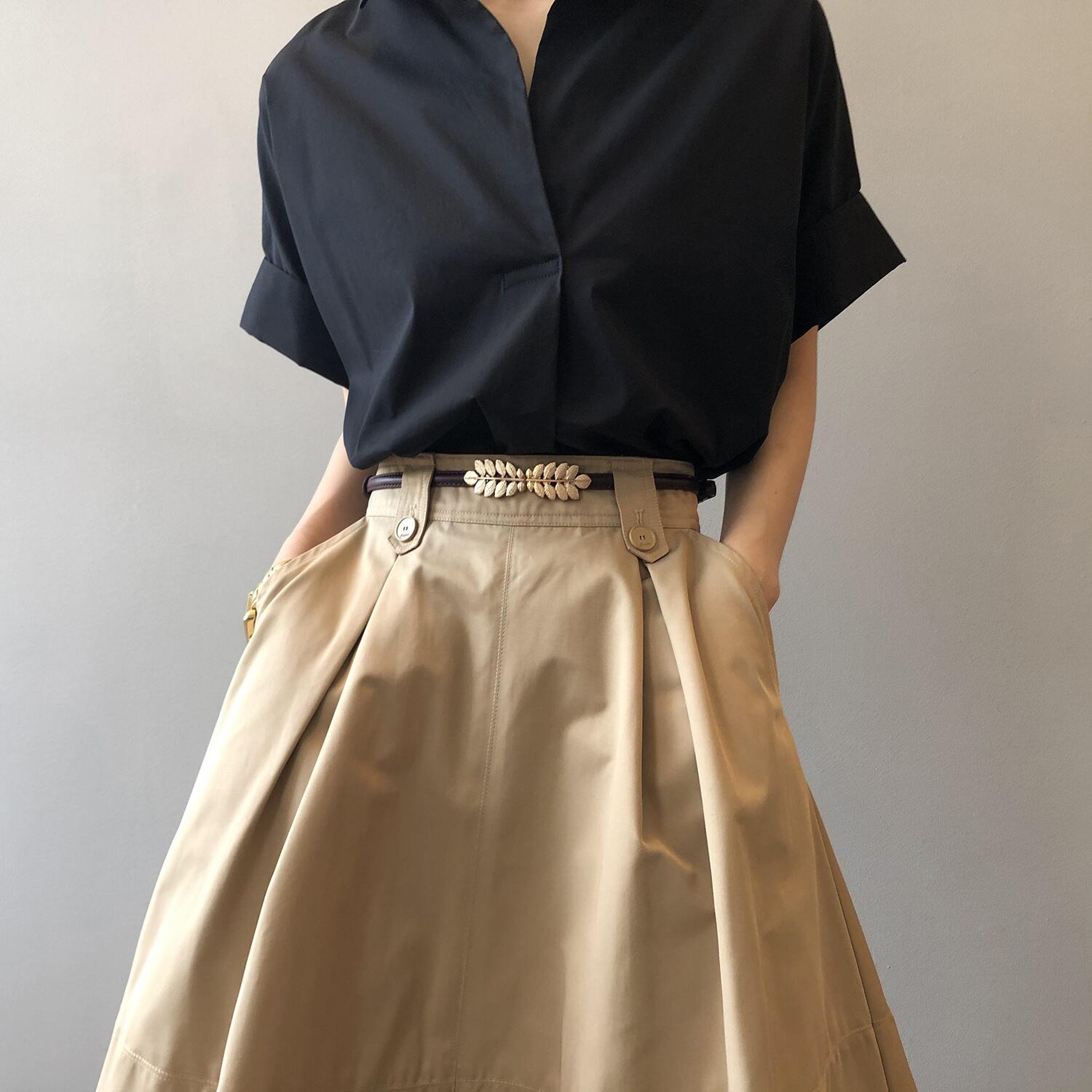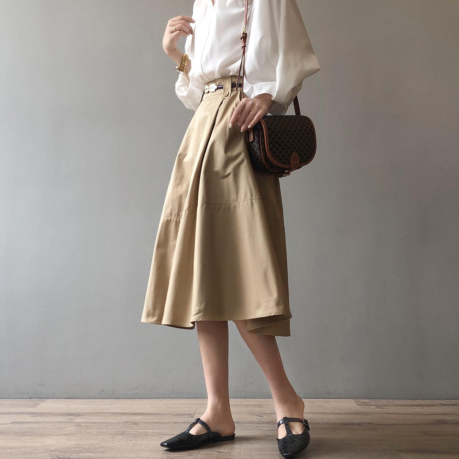 華やかなシルエットが魅力のタックAラインスカート。ウエストに程よいタックが施されたデザインで、女性らしさを引き立てます。どんなトップスとも相性抜群で、オフィスからデートまで幅広いシーンで活躍する一枚です。