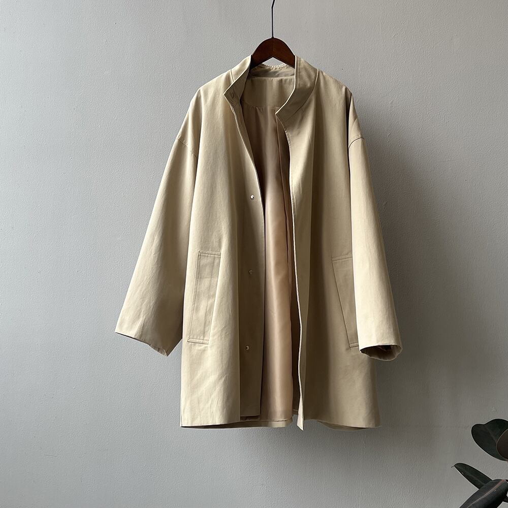 シンプルで上品なデザインが魅力的なアイテムです。スタンドカラーがネックラインをすっきりと見せてくれ、おしゃれな印象を演出します。シンプルなデザインなのでどんなコーディネートにも合わせやすく、幅広いシーンで活躍してくれること間違いなしです。