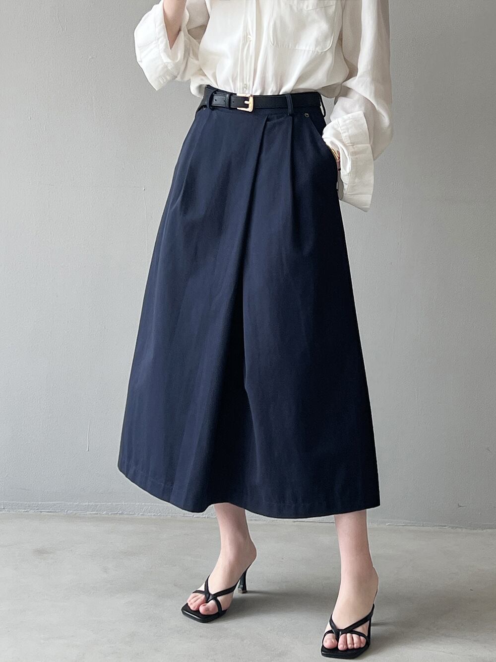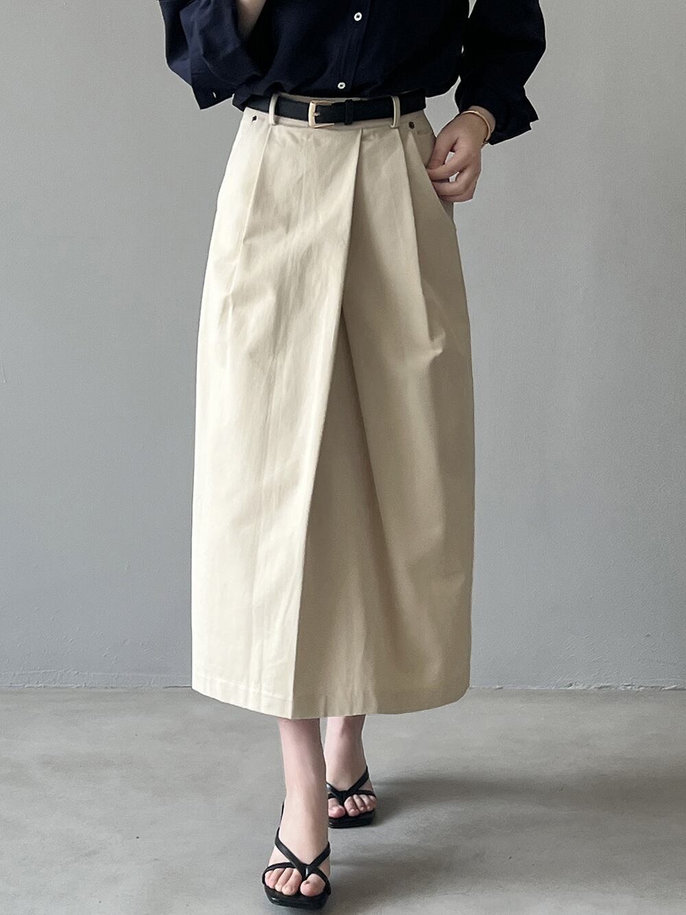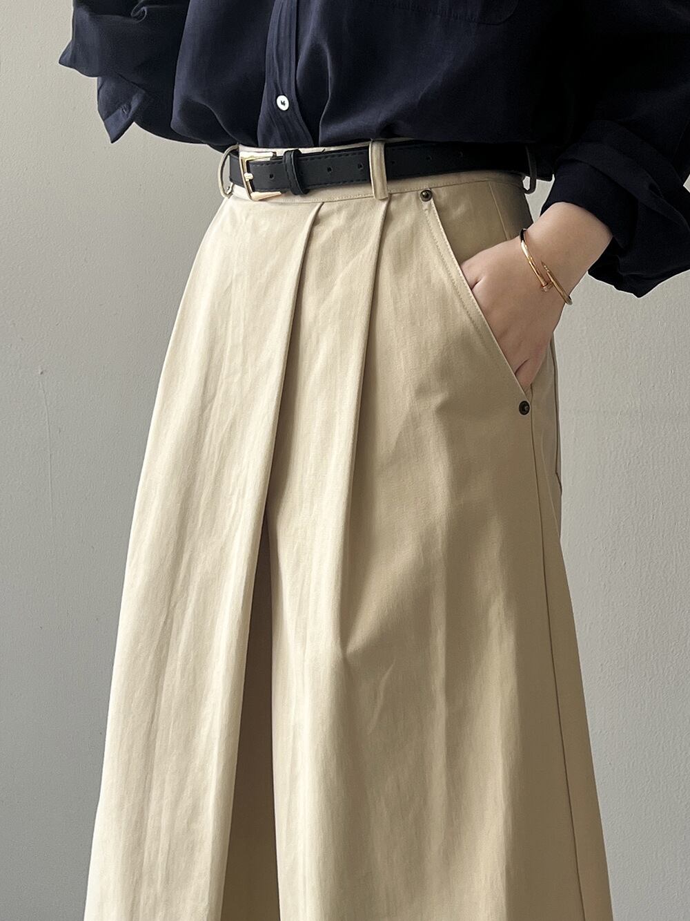 シンプルで上品なデザインが特徴のアイテムです。ウエスト部分に施されたタックが、程良いボリューム感を生み出し、美しいシルエットを演出します。コットン素材を使用しているため、肌触りが良く着心地も抜群です。デイリーコーディネートに取り入れやすく、様々なトップスとも相性抜群です。
