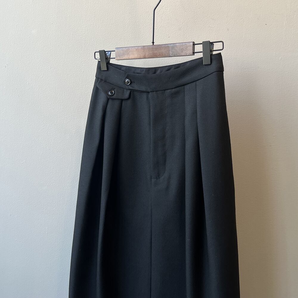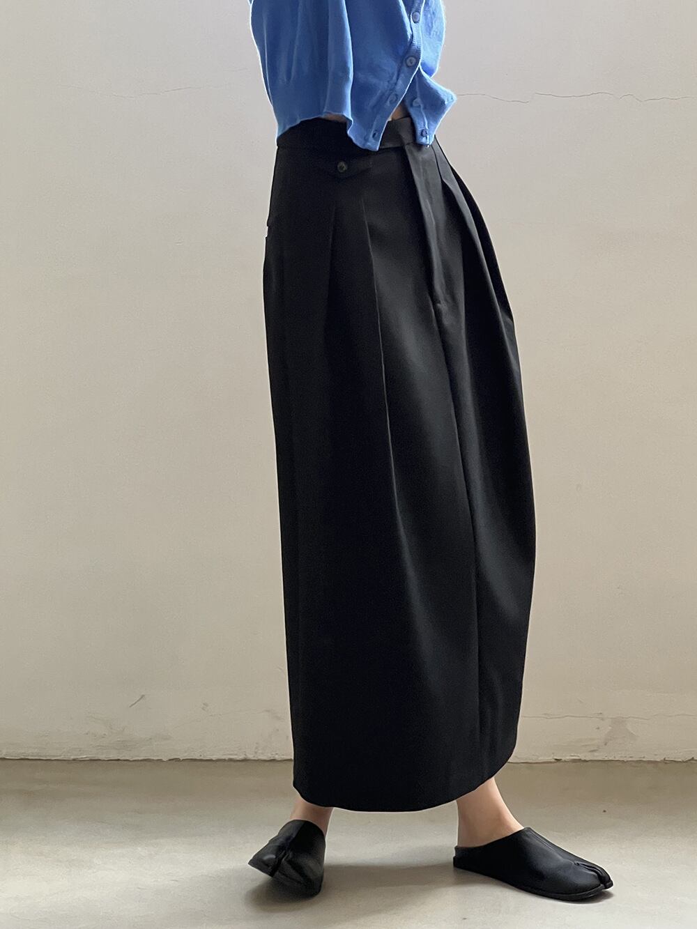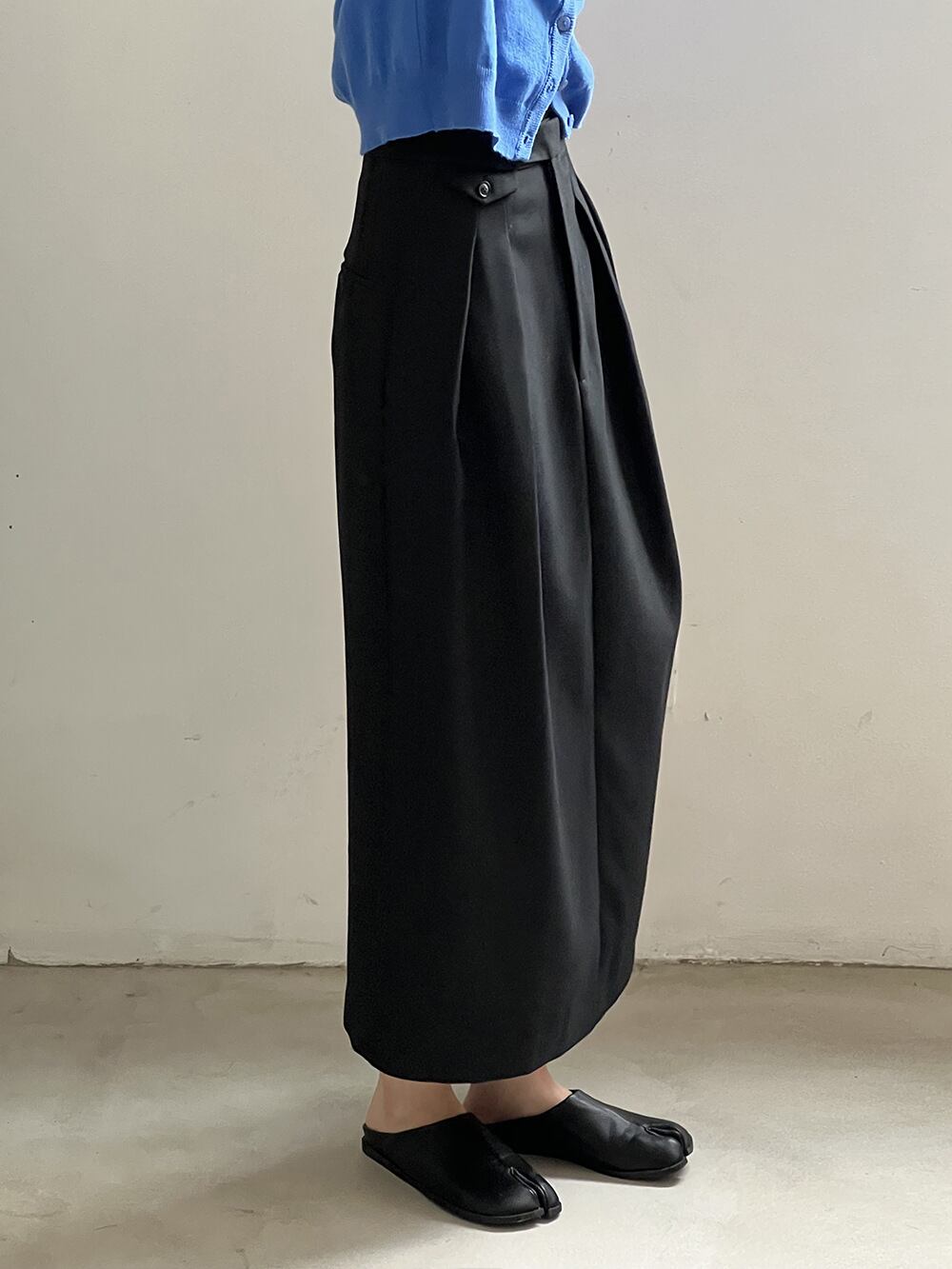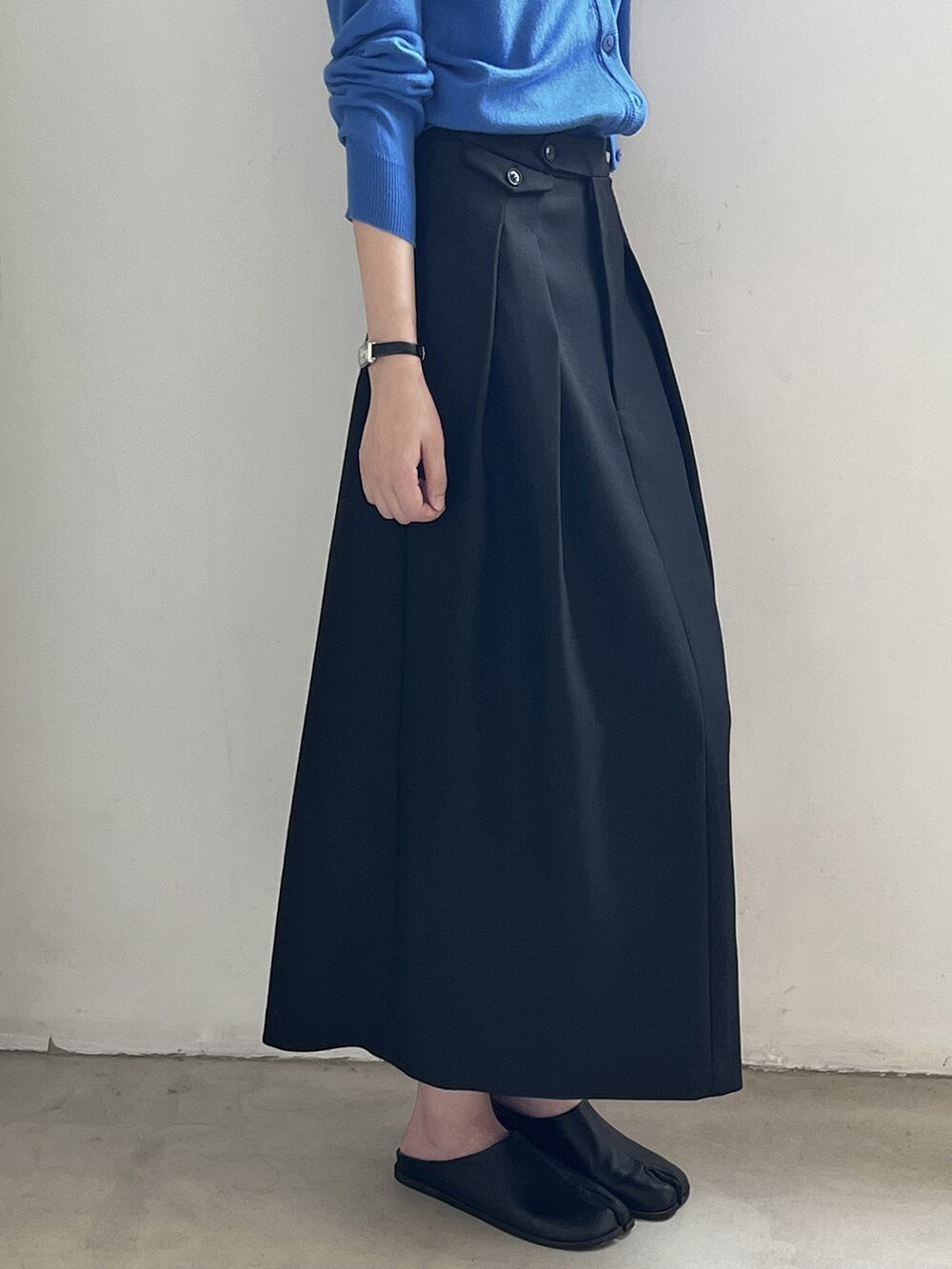 丁寧に施されたタックが魅力的なロングスカート。シンプルながらも上品さを演出するデザインで、どんなトップスとも好相性です。適度なボリューム感と長めの丈が、大人の女性にぴったりのエレガントさを引き立てます。