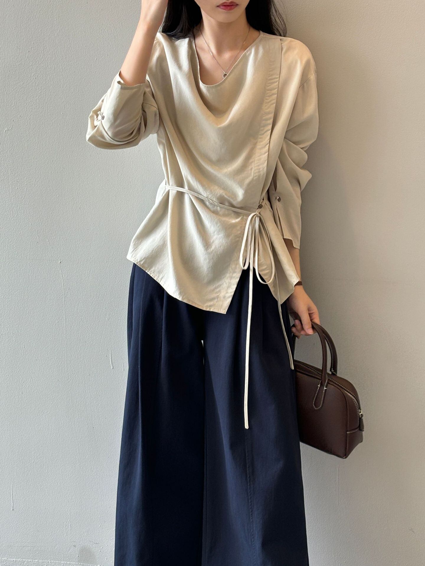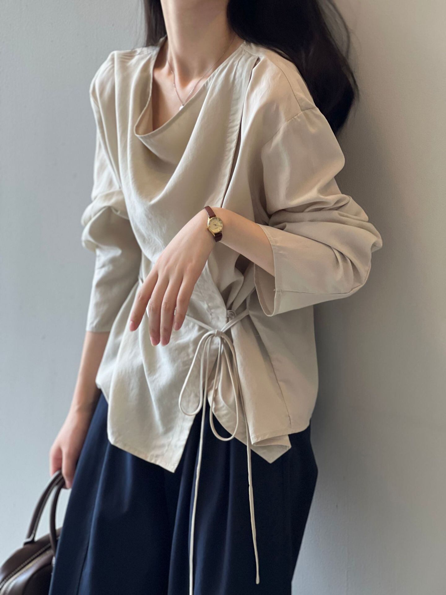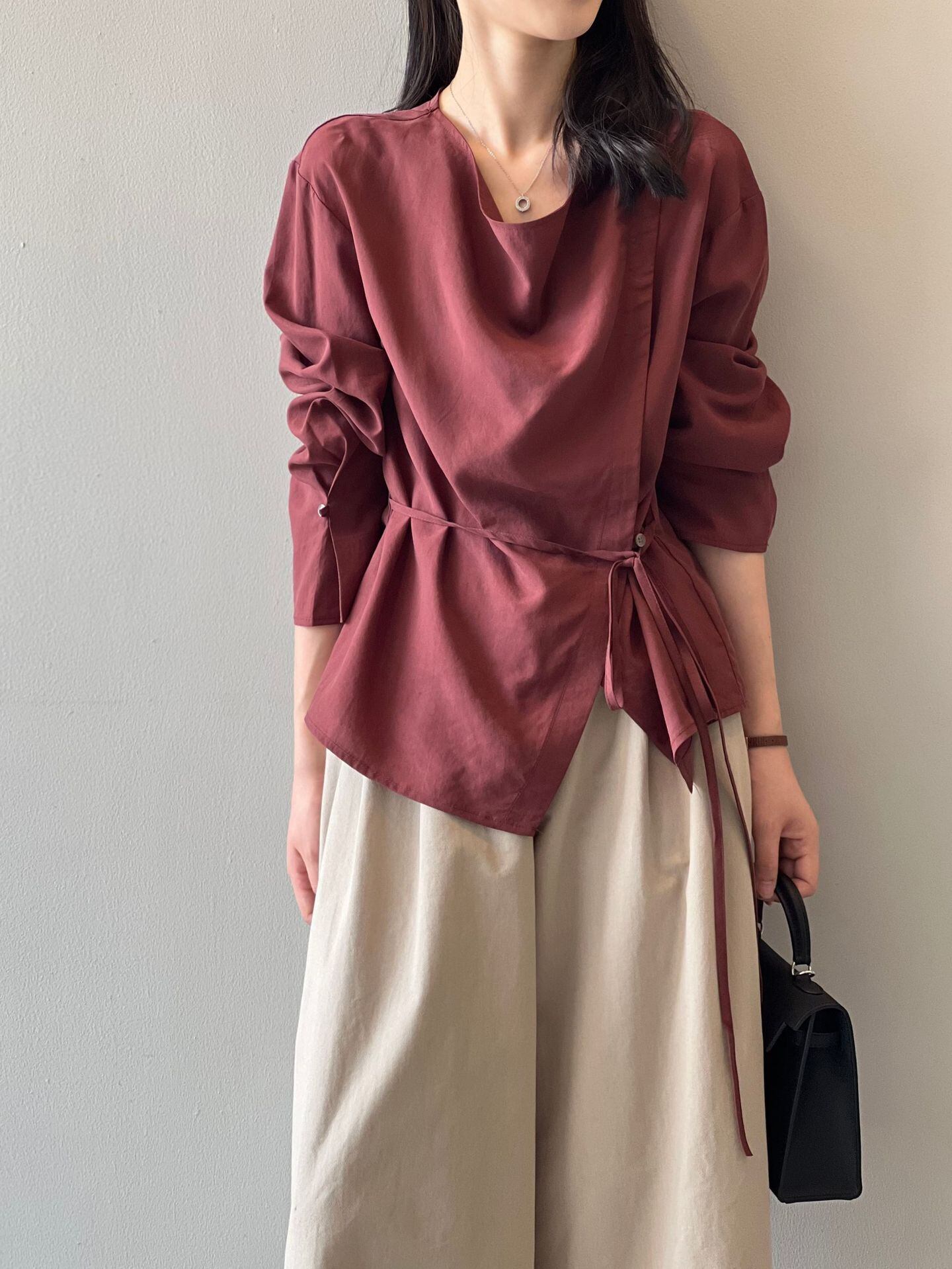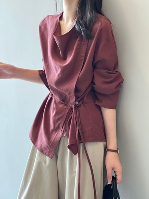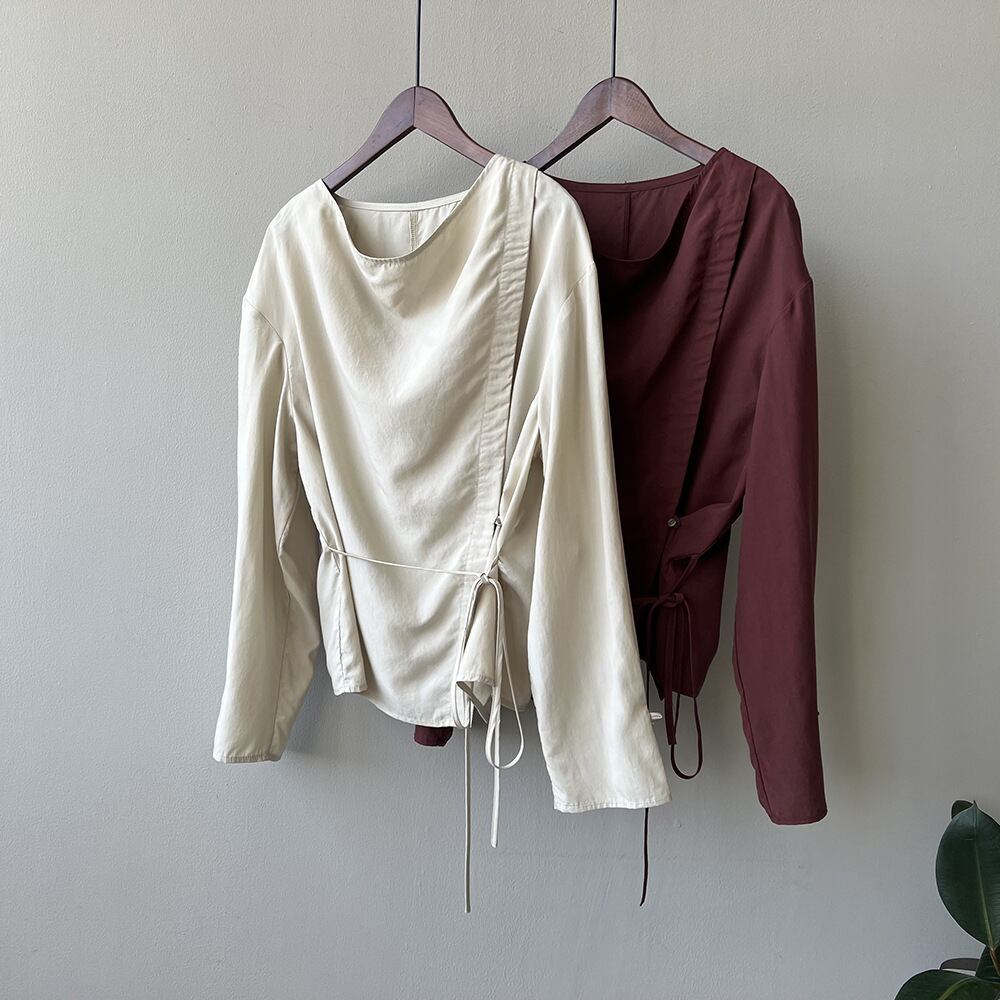 (2color)サイドボタンリボンシャツ