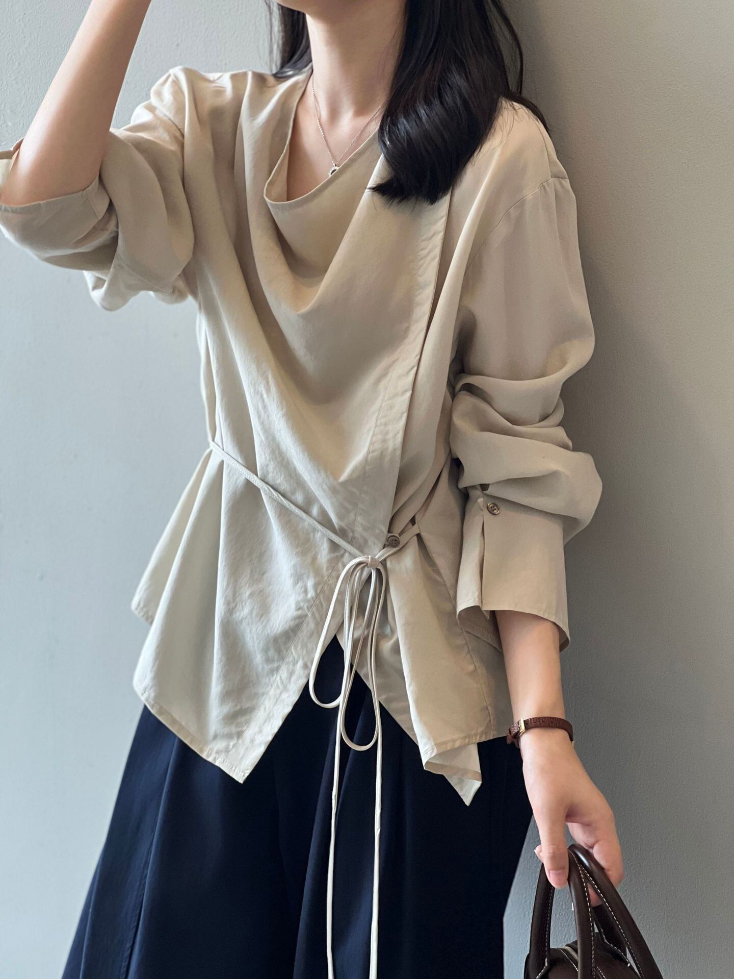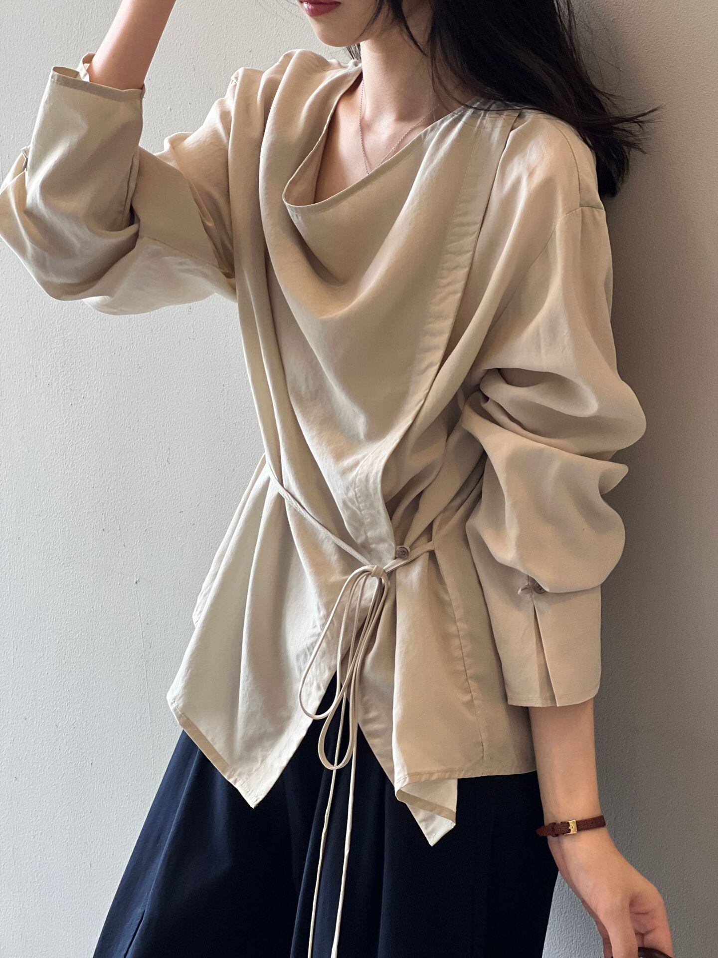 シンプルでありながら、可愛らしさを引き立てるサイドボタンリボンシャツ。特徴的なサイドボタンとリボンのデザインが、着こなしに遊び心を加えます。デイリーからオフィスシーンまで、さまざまな場面で活躍するアイテムです。